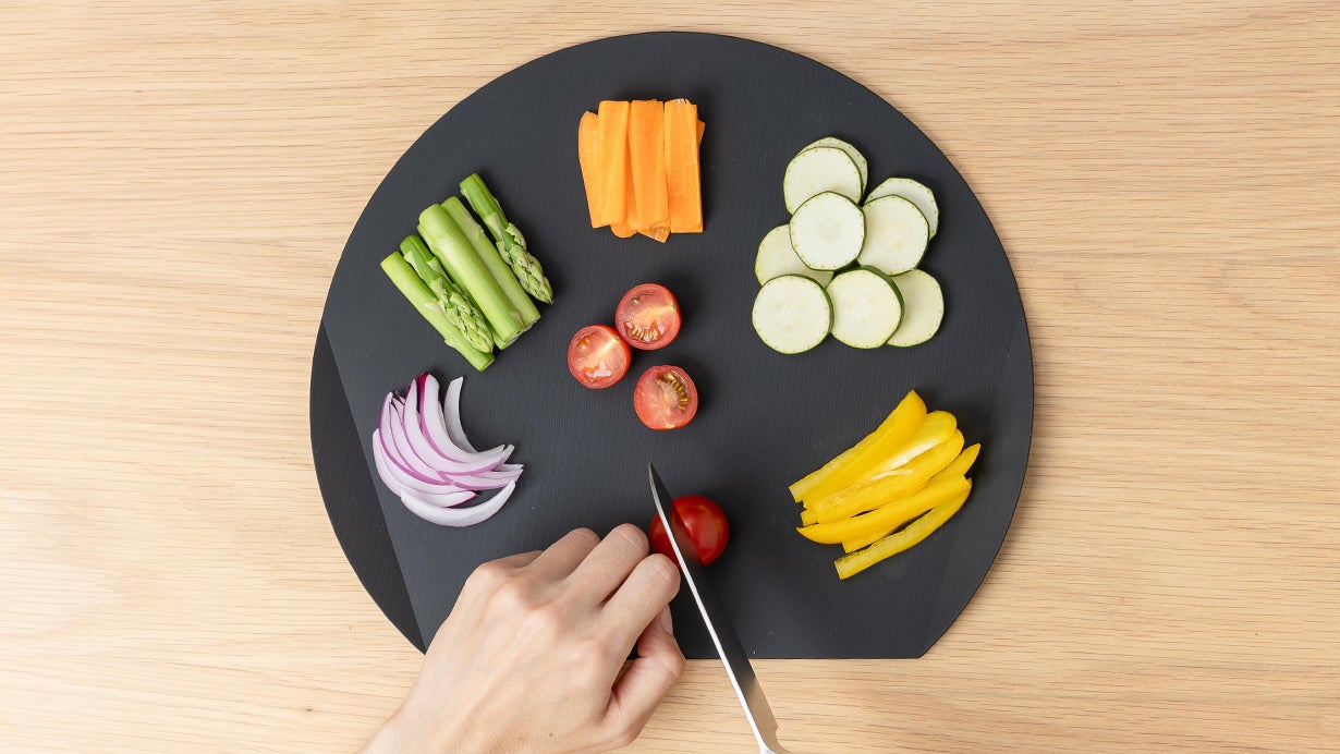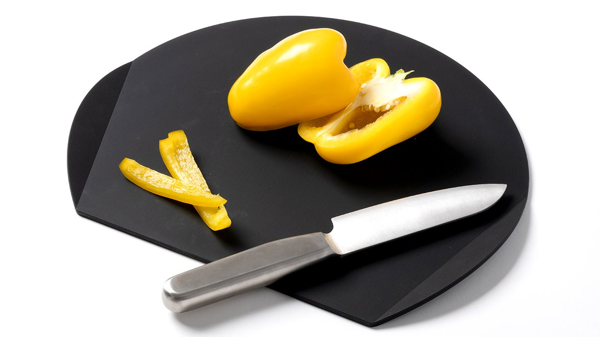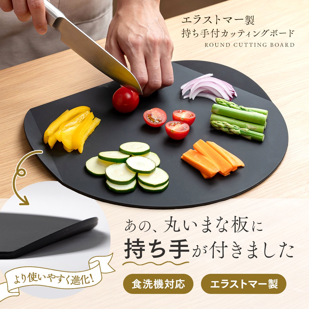 「木製」と「プラスチック製」いいとこ取りの "エラストマー製の丸型まな板"