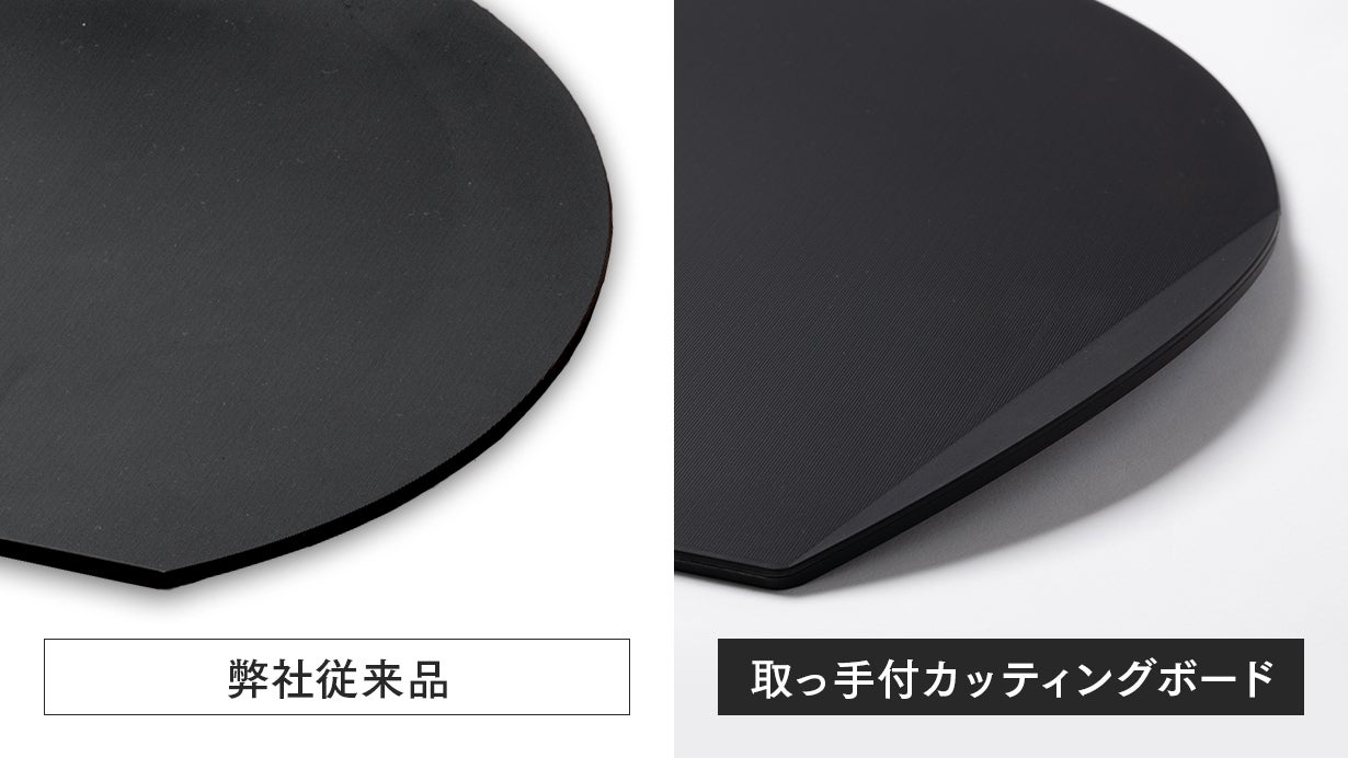 今やまな板の新常識となった「丸いまな板」。その良さはそのままに、持ち手がついてより使いやすく進化しました。