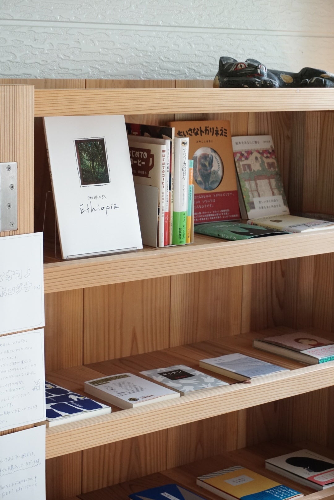 偶々本棚になりそうな棚があって、待ち時間やコーヒーを飲んでいる時間に手にとってもらえるしと、「なんならココで本屋さんやってみませんか?」とお声がけしたのがきっかけで、小さな一歩として本棚が生まれたわけです。