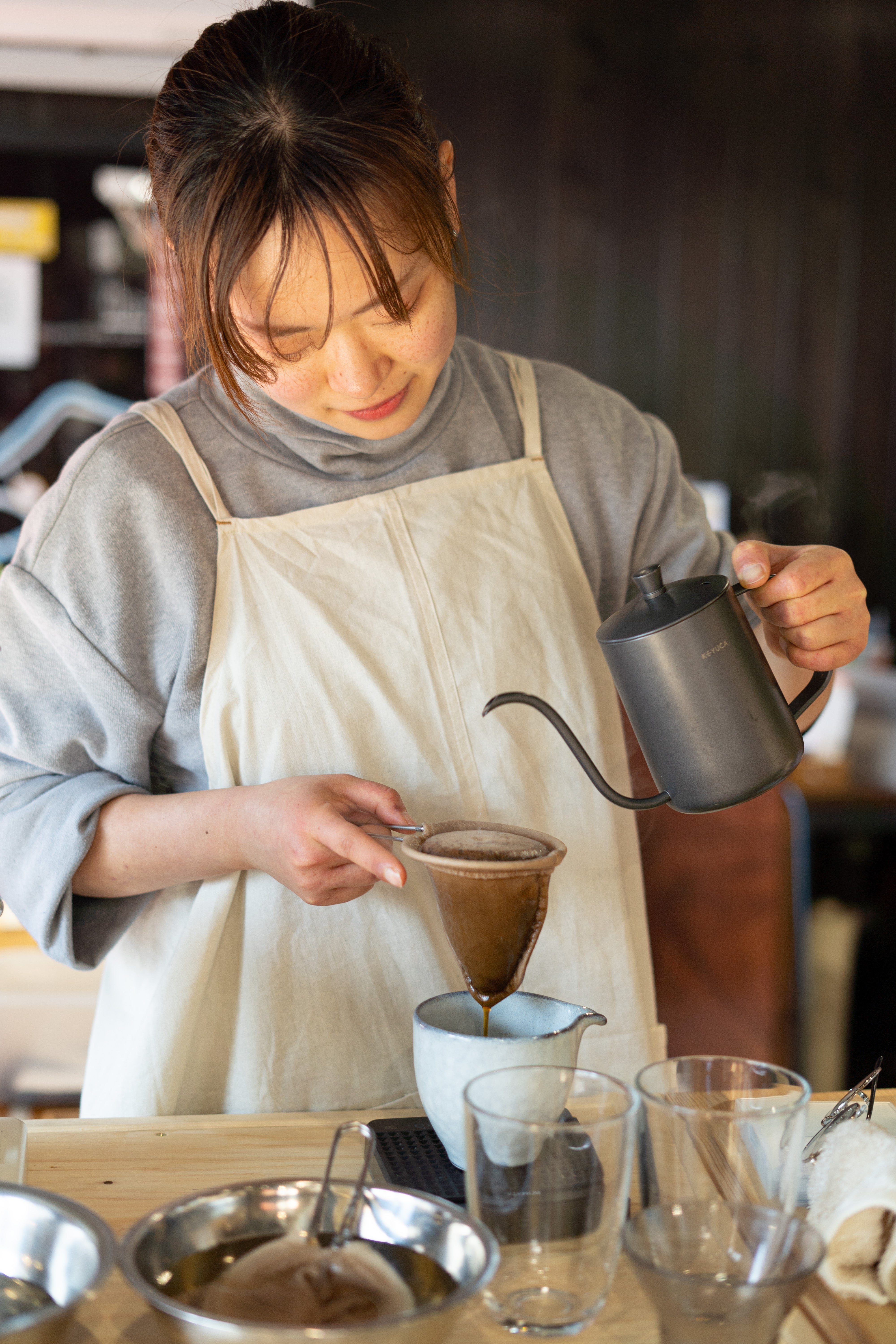 余談、リニューアルオープン先の建物では、かつて地域のおばあちゃんたちが田舎饅頭や濁酒を作っていたところです。そんな歴史を反映してHARSHA COFFEEでは甘酒まんじゅう(自家製甘酒、北海道豊浦町礼文華産の黒小豆を使った発酵あんこ、米粉「さどっ粉」使用)を作っています。