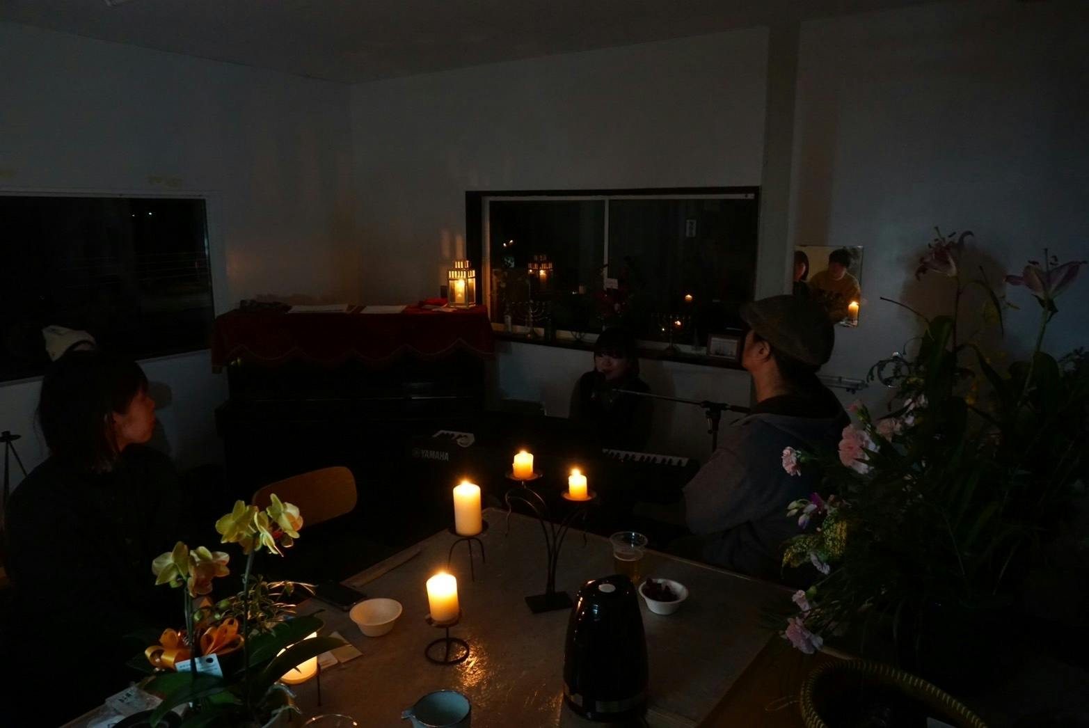 キャンドルとアルコールランプのライトで照らされた空間は、クリスマスの夜にはぴったり。そんな中でピアノの演奏や弾き語りと、たっぷり音楽に浸りながら、コーヒーを片手に。来店いただいた方は大変満足したとご感想をいただきました。