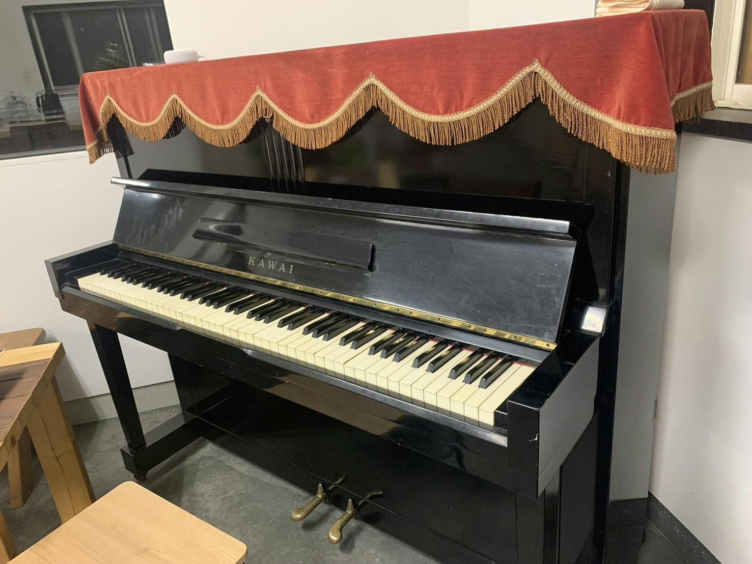 皆様のご支援金で調律し音色を取り戻しました。もともと町の教会にあり、持ち主が亡くなり廃棄するところを引き取り、ここHARSHA COFFEEにやってきた。50年以上は経っているピアノです。
