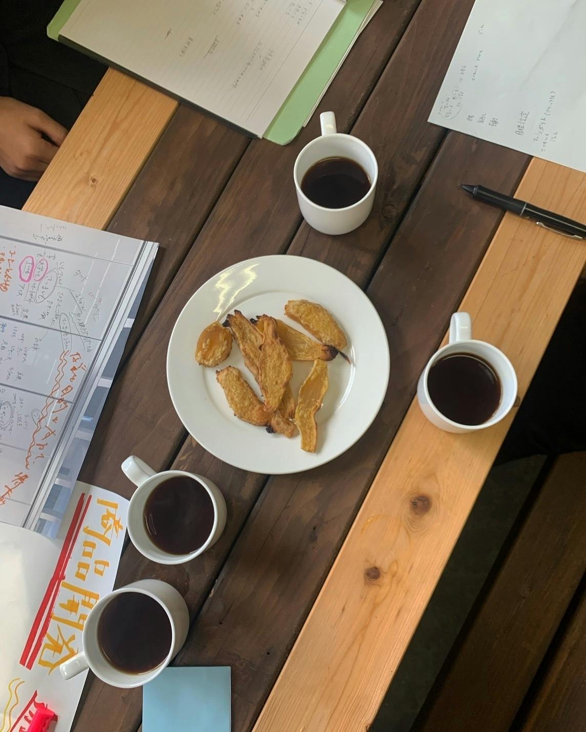 潮風浴びて干された干し芋とコーヒーを試食