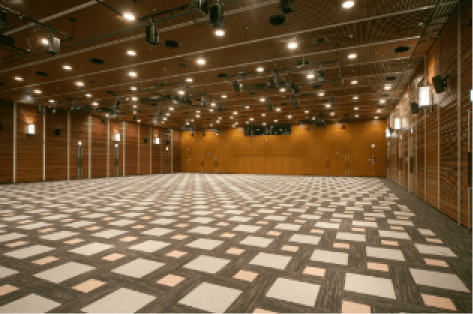 ルミエール府中の入口から会場まで、そして会場内も完全フルフラット。