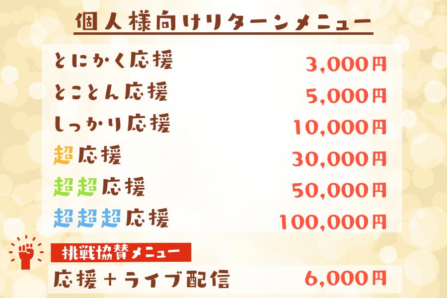 主にただ応援したいと言ってくれる方に向けたメニューとなっております