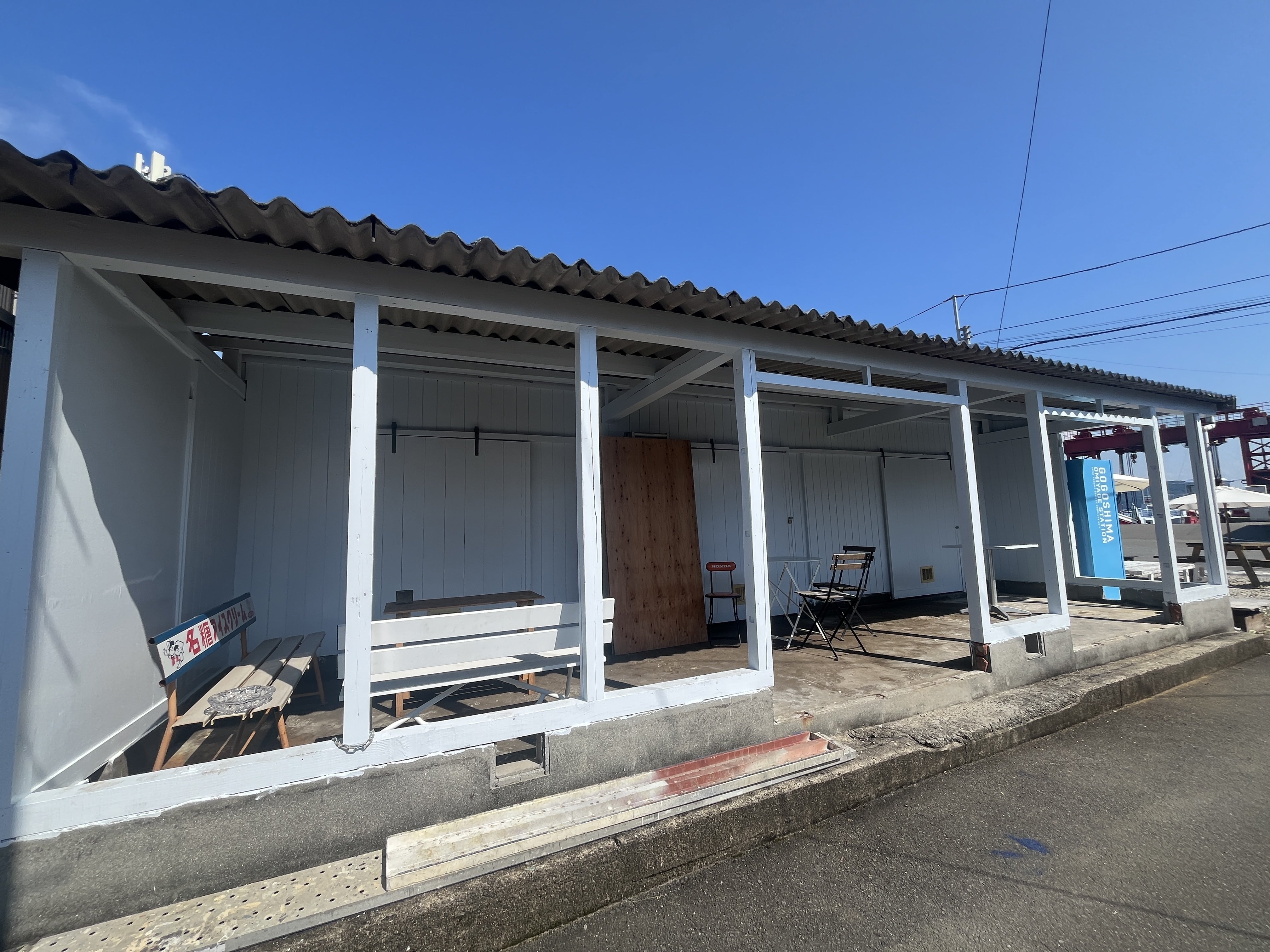 島の玄関口である由良港の前。現在は、船を待つまでの多目的スペースとして活用しています。