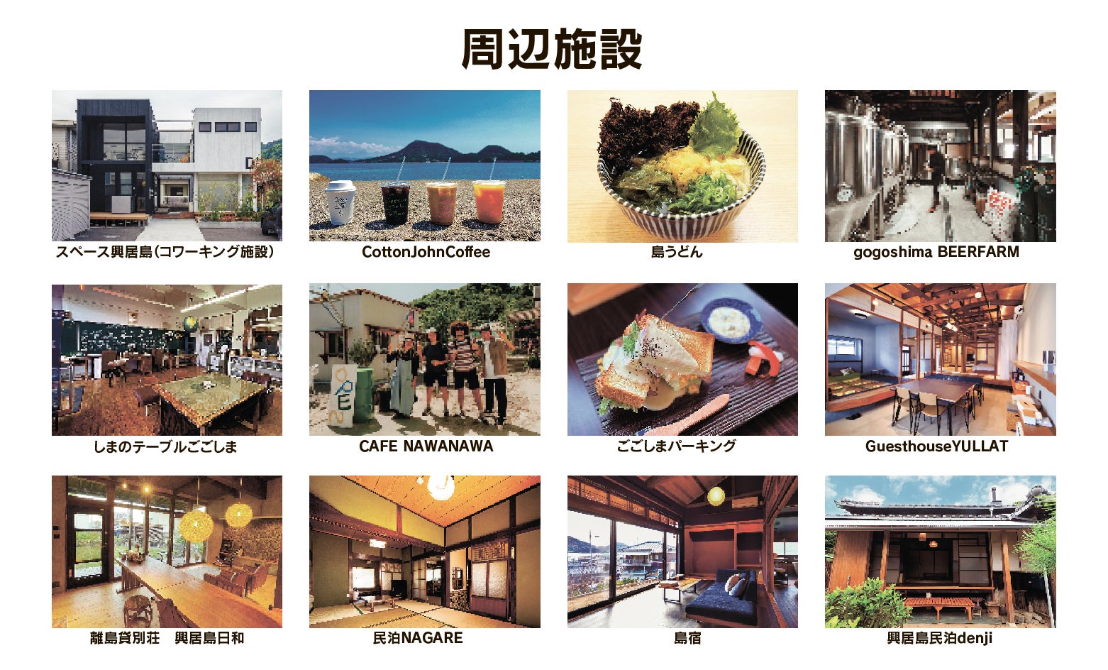 この施設では、観光案内所、自転車や釣り具の貸し出し、民泊受付(鍵の受け渡し等)、お土産販売など、興居島に訪れた観光客のニーズに応える多様なサービスを提供します。