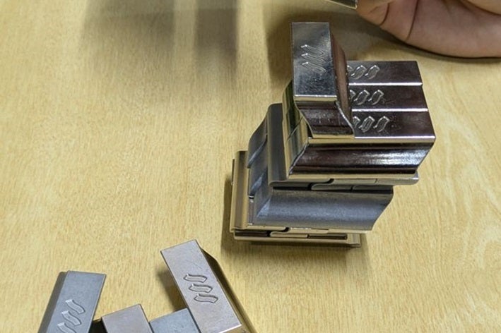 金型とは、大量生産するための道具です。アルミや亜鉛合金を熱し、ドロドロに溶かして金型に流し込み、冷やして固める形にします。