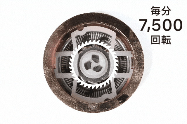 超高速回転モーターを搭載しており、ヘッドが1分間あたり7,500回転します。