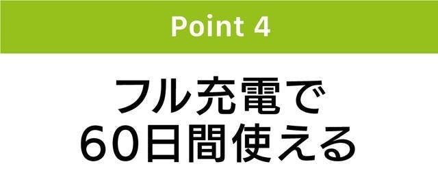 フル充電した状態で最長60日間使えます。
