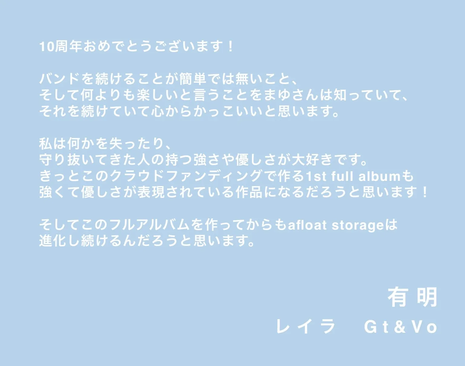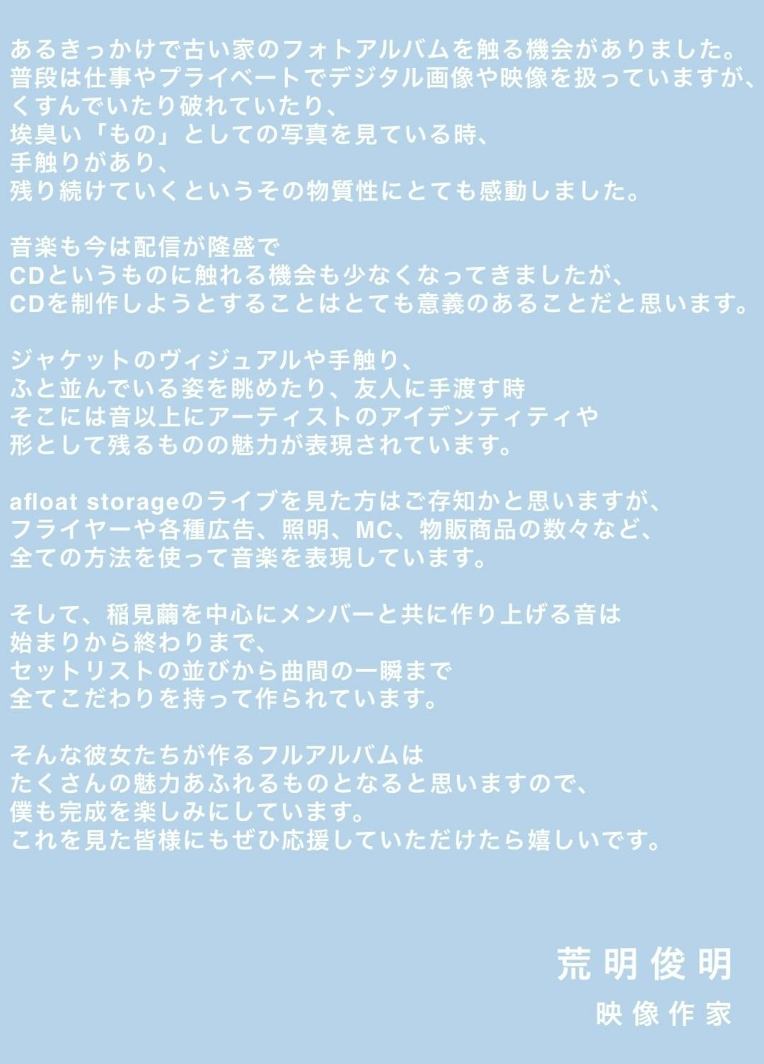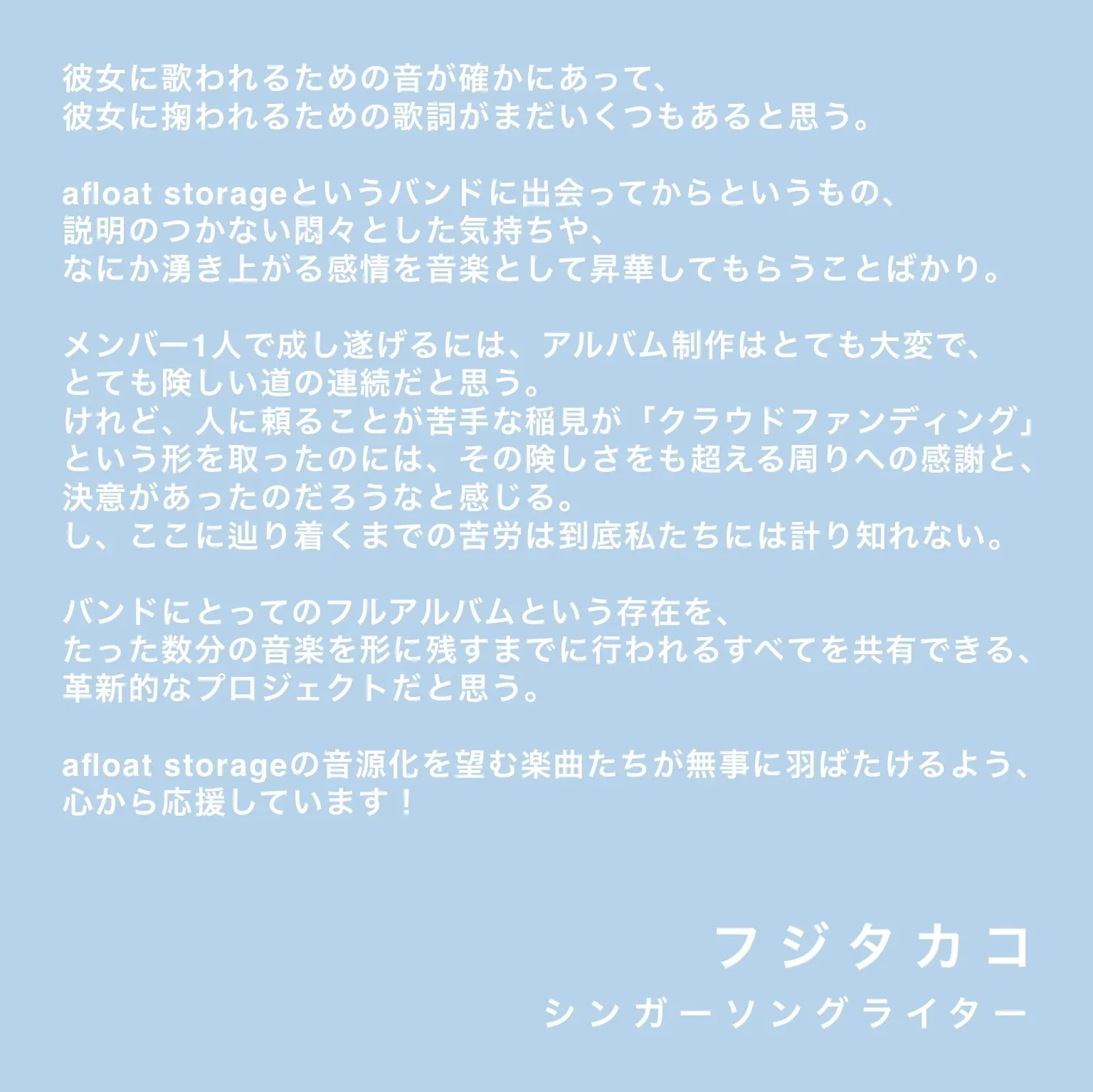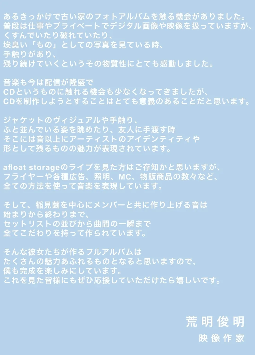 その上でわたしはafloat storageの音楽は常に触れていなくても、必要な時に取り出せるような、思い出すだけでその時に必要な気持ちになれるような
