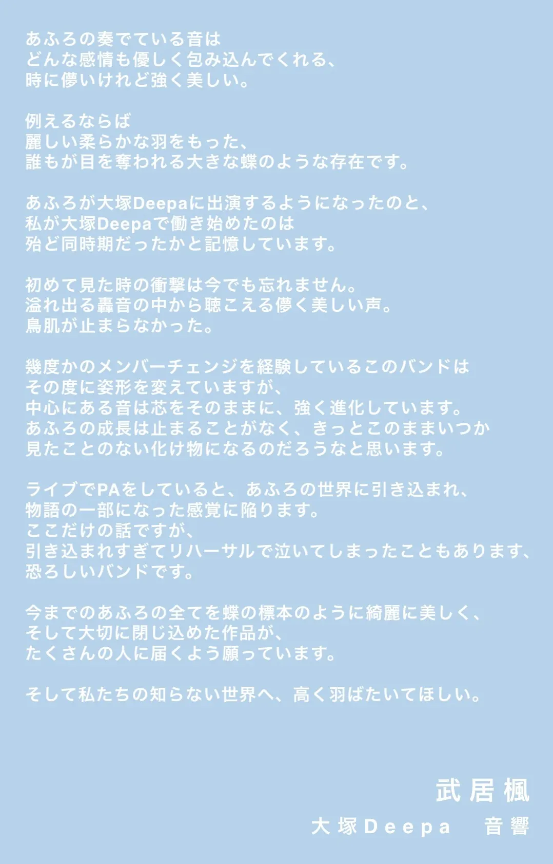 あふろのフロントマンとして一層精進し、音楽を知り、届ける力を高めて