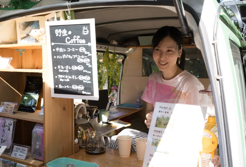 村越さんは10年ほど前から、キッチンカーとカフェ店舗で「野生のコーヒー」を販売しています。通りかかったお客さまと朗らかに話されている村越さん、実は元々コーヒー販売を目的にしていたわけではないそうです。