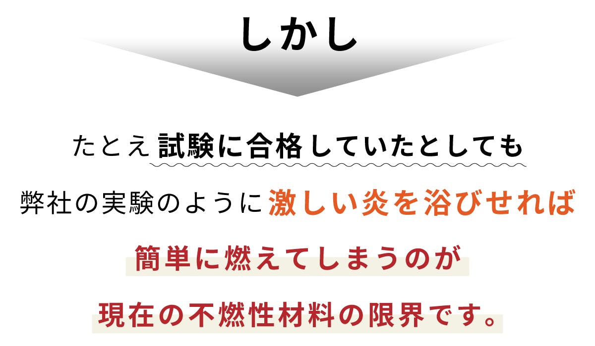 不燃性をうたう多くの材料は「不燃性試験の合格がゴール」