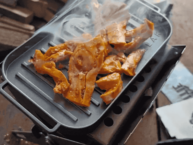 小型ながらも本格的な焚き火台の機能を搭載し、料理しながら揺れる炎を楽しめます。