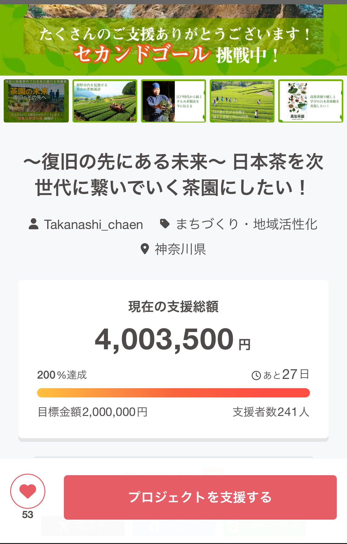 体調に気をつけて進めていきたいと思いますが、皆さまからの応援メッセージを拝見し、高梨茶園一同、元気をいただいております。ありがとうございます!