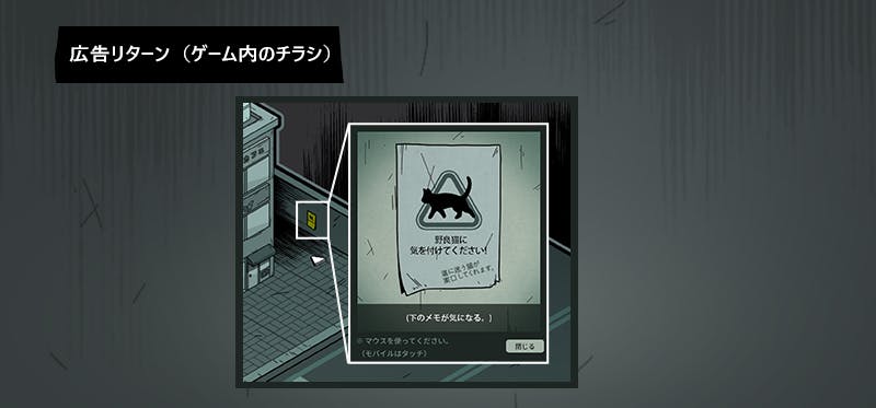 詳細: ゲーム内に登場する新聞に広告を掲載いたします。 内容やデザインはゲームの雰囲気とコンセプトに合わせてアレンジされますが、伝えたいメッセージなど自由に装飾いただけます。