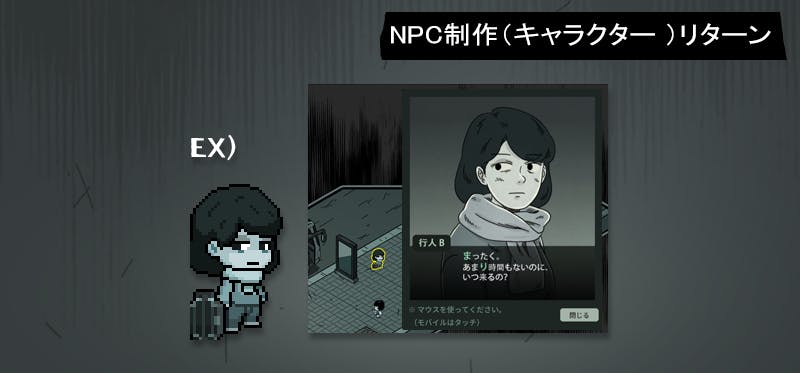 詳細:ご希望の設定をゲームの雰囲気とコンセプトに合わせてアレンジし、 ゲーム進行のための手がかり提供やストーリーを説明するNPCとして制作いたします。