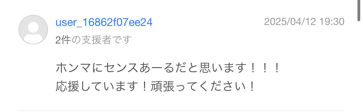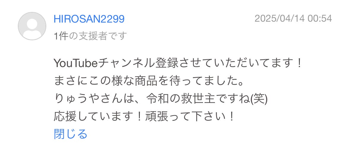 ご支援を沢山頂いているのはもちろん大感謝なのですが、載せきれませんが沢山のコメントを頂いておりますが事もありがたく受け止めております!
