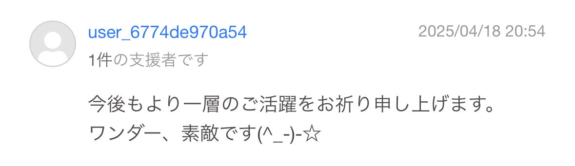 開始から1ヶ月経過しましたが日々ご支援を頂いております!