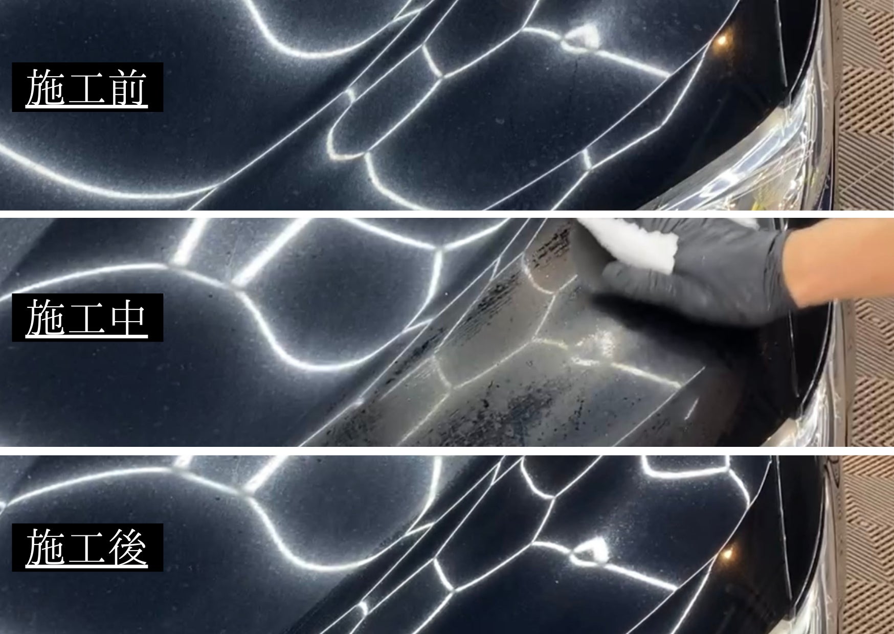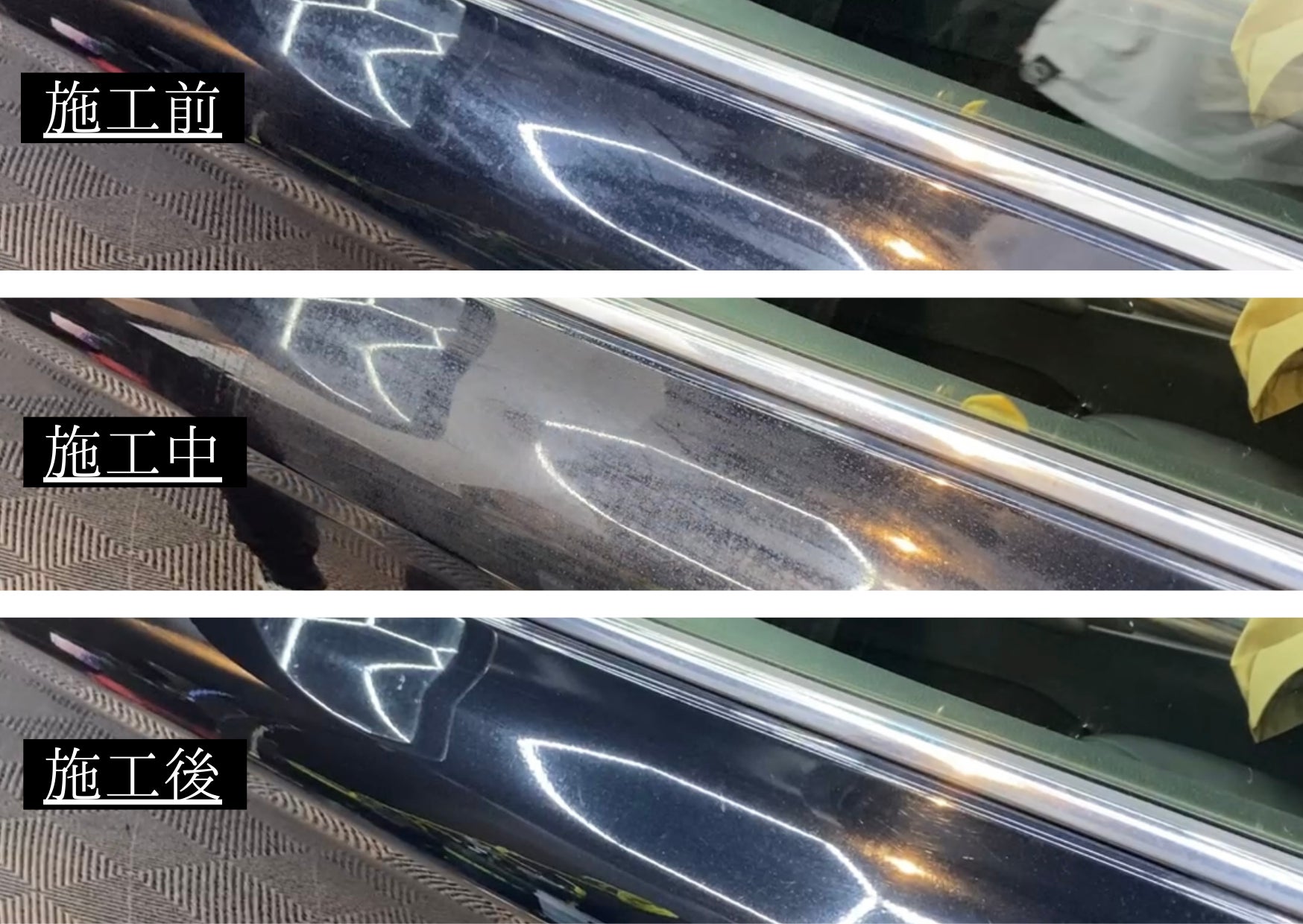 ただ、コーティング施工してから6ヶ月程経っていたせいで、もう手遅れな部分も多くて、完全には元に戻りませんでした。