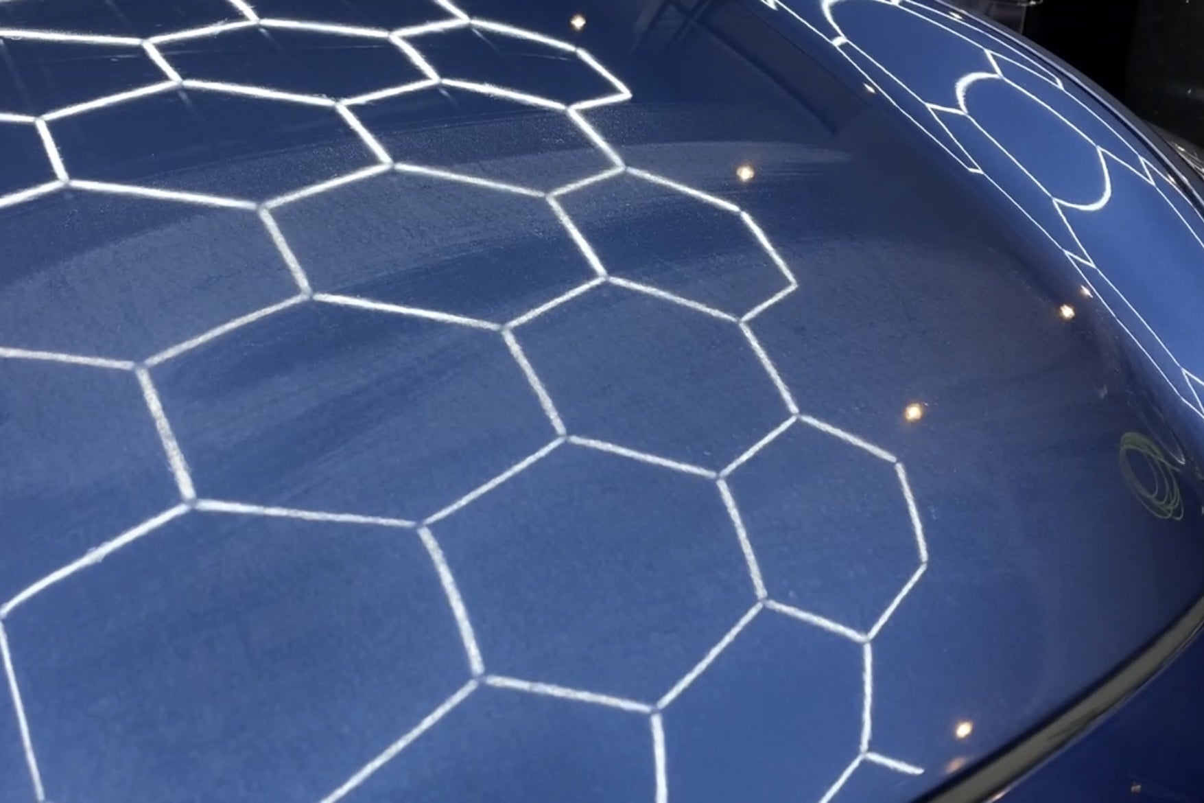 遠くから見ればツヤツヤで綺麗なのですが、近くで見れると白い水滴の様な跡が無数に広がっていたのです。