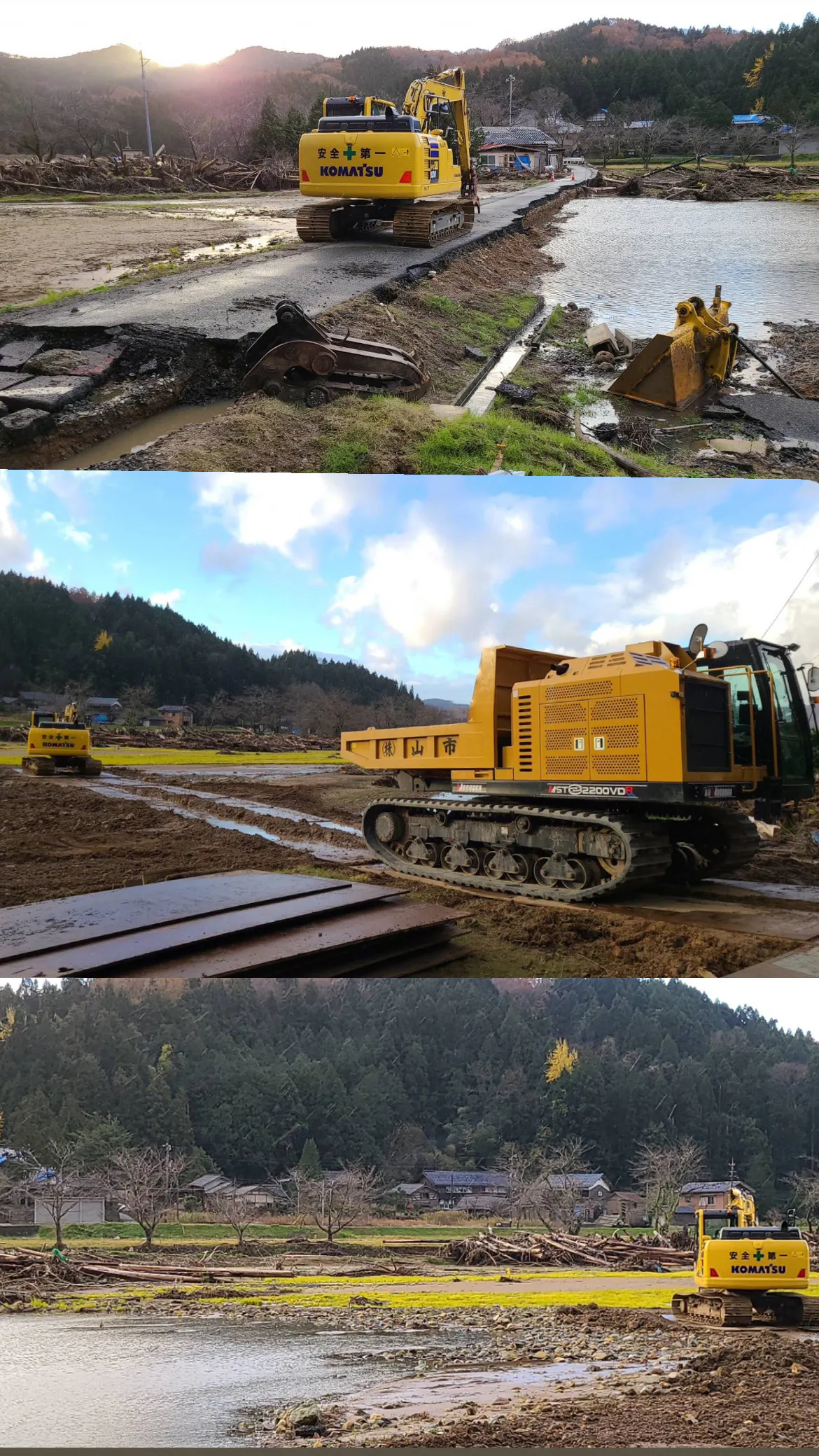 表現しにくいのですが私自身、写真からでもパワーをもらえます。田んぼ自体の調査や工事はまだまだ先かもしれませんがとりあえずは河川の本格的な復旧工事がこうして目でみてわかるように行われていく様子が心強く、いよいよ始まる!とゆう思いでした!!