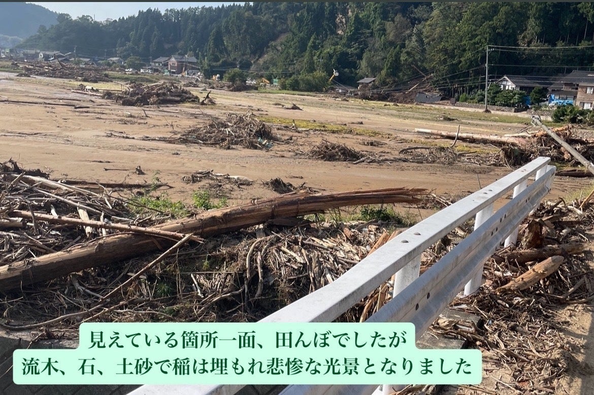 今年の1月に起きた能登半島地震で家は全解体となり、農機具と田んぼと車庫は残っていたものの先日の能登半島豪雨での水害で壊滅的な被害を受け私たちはこれらのものも全て失いました。父はなんとか残った物だけで米は作れる!この地で生活していく!と苦しい中でも自らを奮い立たせ米を植えました。そして米の収穫を目の前に全てを奪われた姿を見て、自分自身が少しでも力にならないと背中を押してあげないと!と今回このプロジェクトを立ち上げました。