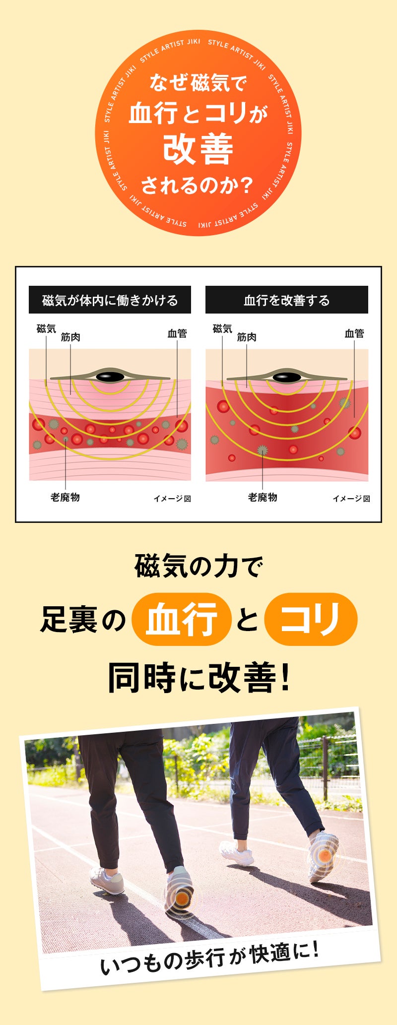 今回は、STYLE ARTISTシリーズ人気の足にアプローチした商品に磁気を組み合わせた足裏の血行とコリを同時に改善する足裏磁気サポーターのSTYLE ARTIST JIKIが新登場!