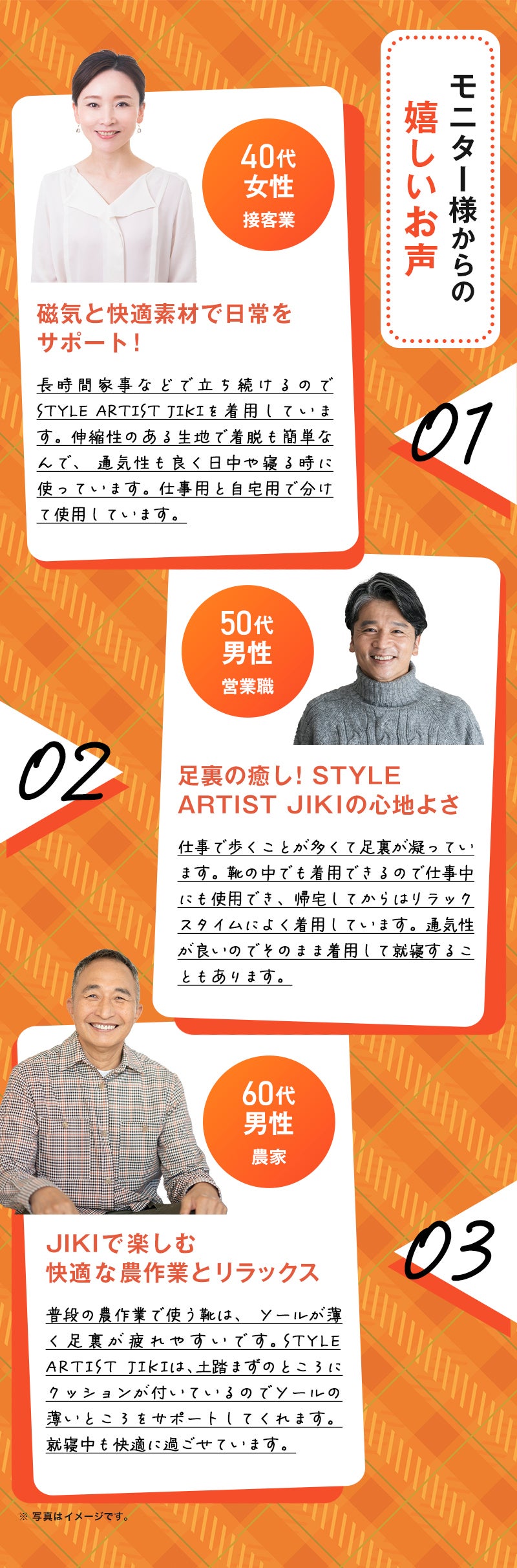 磁気と快適素材で日常をサポート! 長時間の家事で立ち続けるのでSTYLE ARTIST JIKIを着用しています。