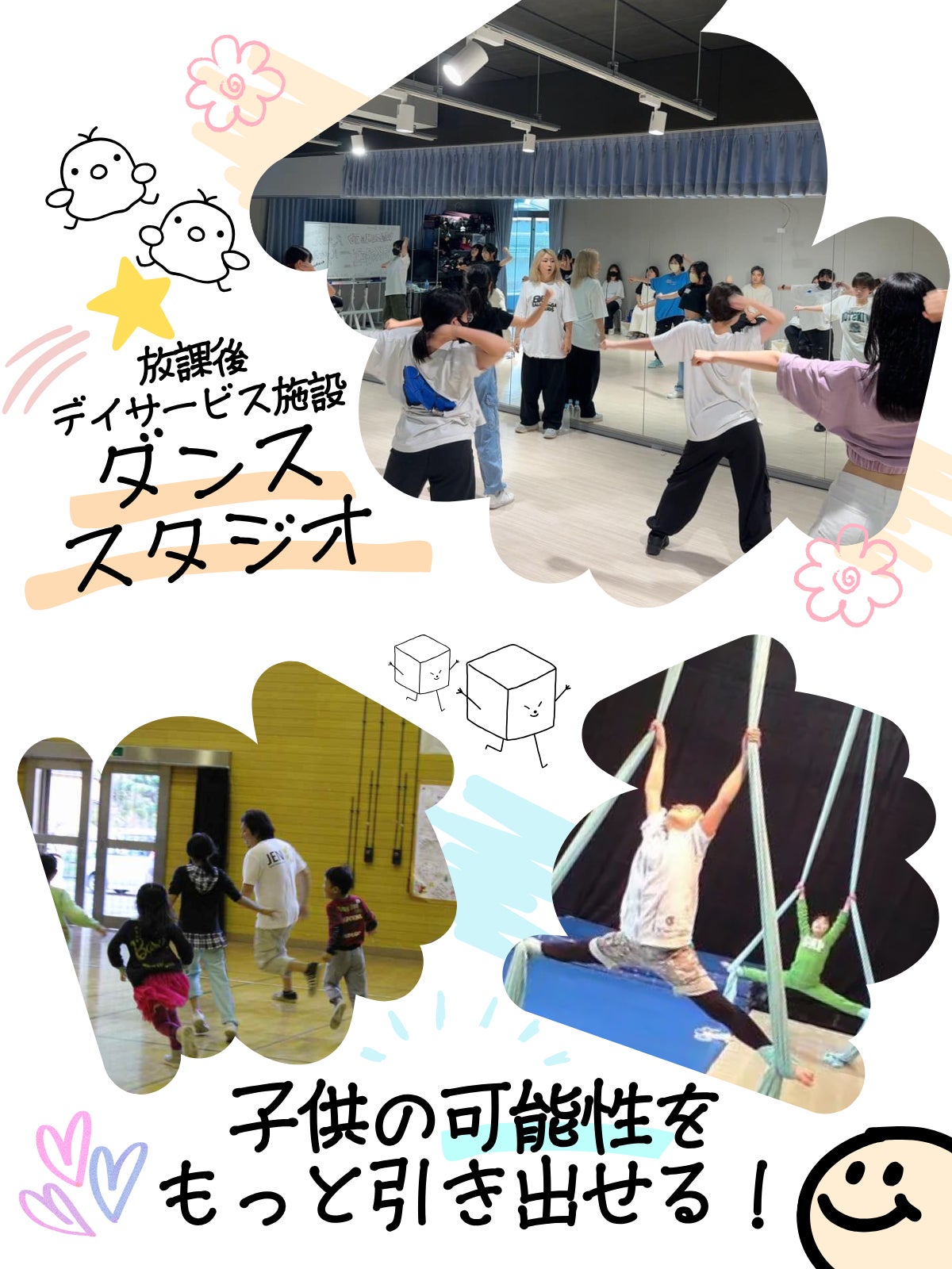 現代社会では、子供たちが自由に過ごせる場所が減少しており、特に発達障害を持つ子供たちが安心して過ごせる場は限られています。また、待機児童問題も依然として大きな課題となっています。そんな中、私たちは「ダンス」というツールを通じて、子供たちの心と体の成長を支援し、大人たちとの繋がりを深めることができる場所を作りたいと考えました。