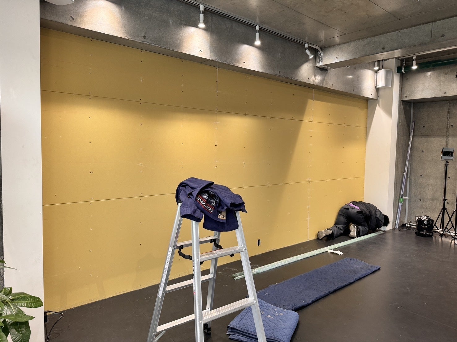 2024年11月26日現在のスタジオ(鏡の取り付け作業をしています)