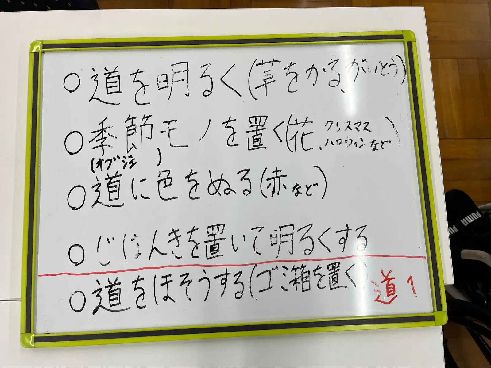「道に色を塗ってカラフルに」「50メートル100メートルのラインを引く」