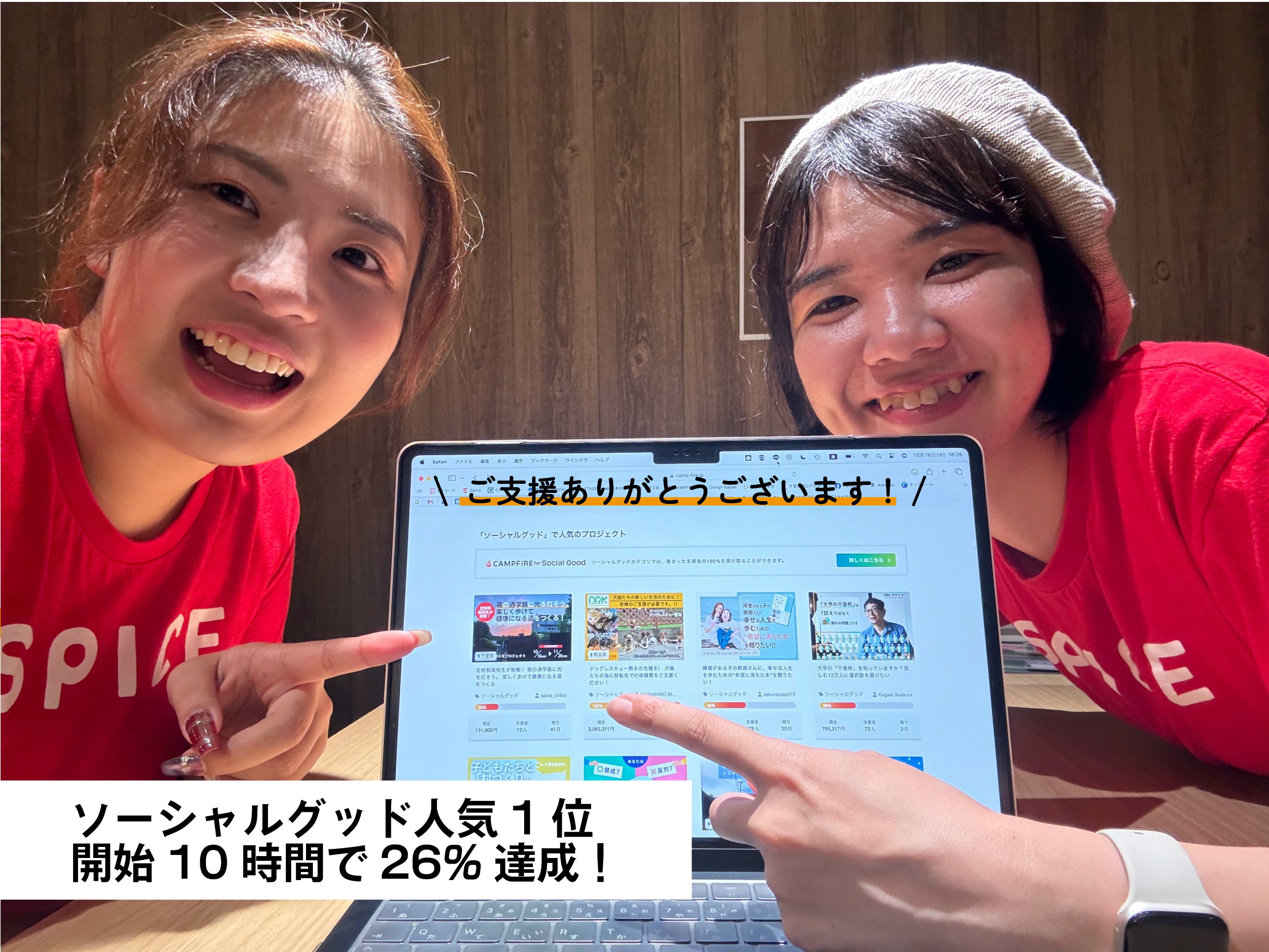 クラウドファンディング開始からわずか10時間で、目標金額の26%・131,000円のご支援をいただくことができました!