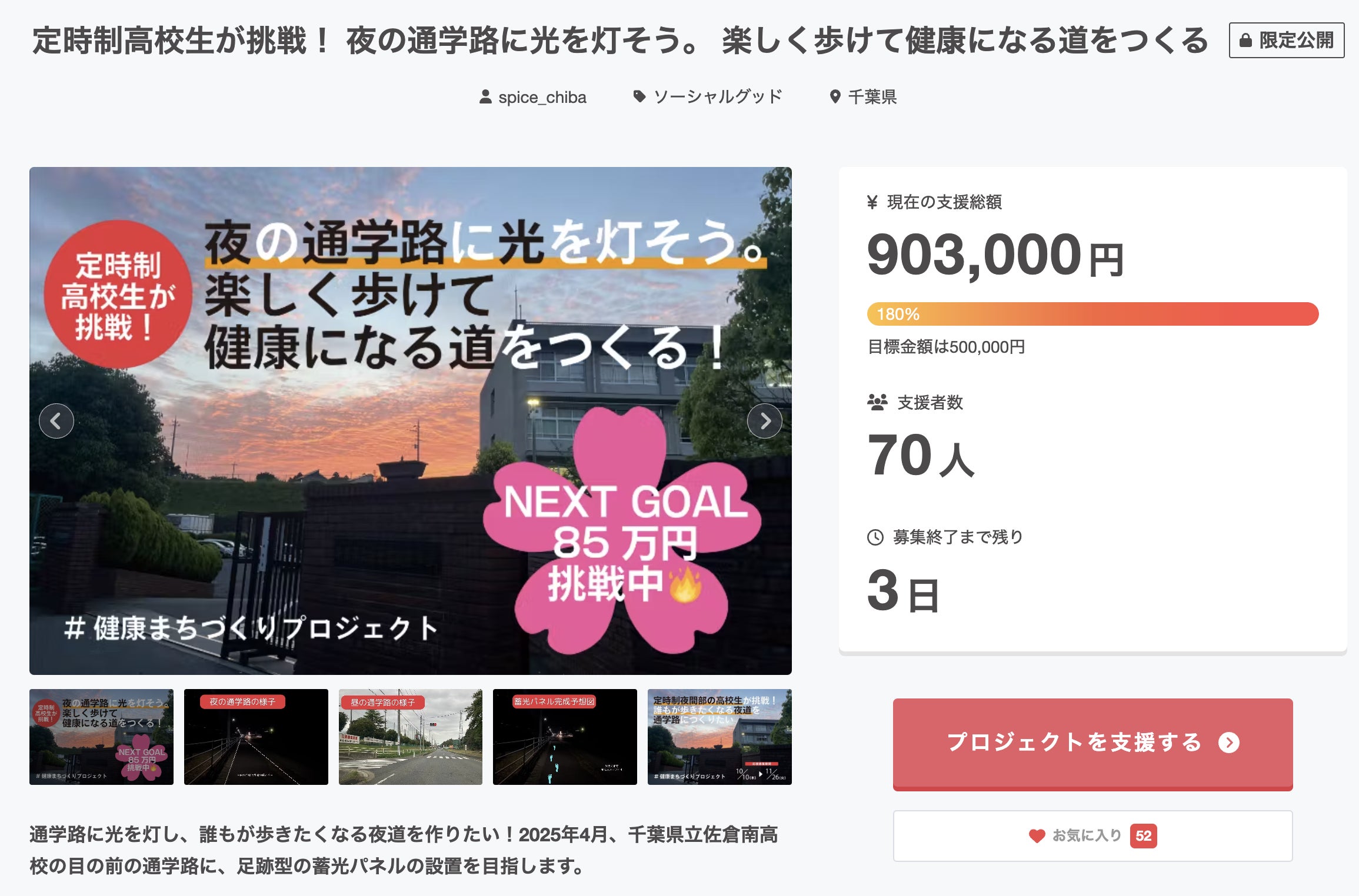 NEXT GOAL設定から12日で、目標であった85万円を大きく超え、総額903,000円、そして70人もの方々に私たちの挑戦を後押ししていただくことができました !