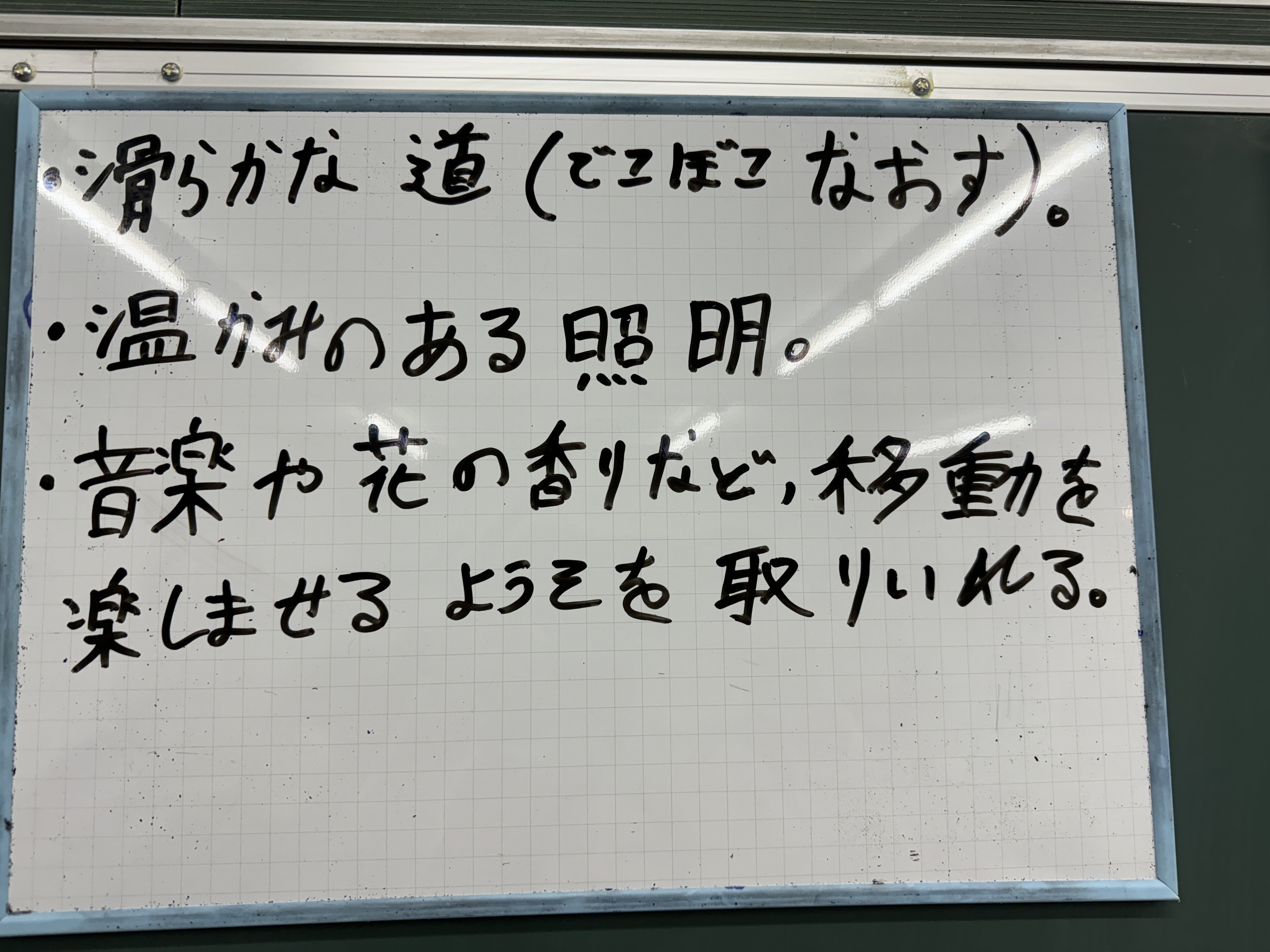 今日のテーマは「足で歩く人だけでなく、車椅子の人も漕ぎたくなる道とはどのようなものか」を考えることです。