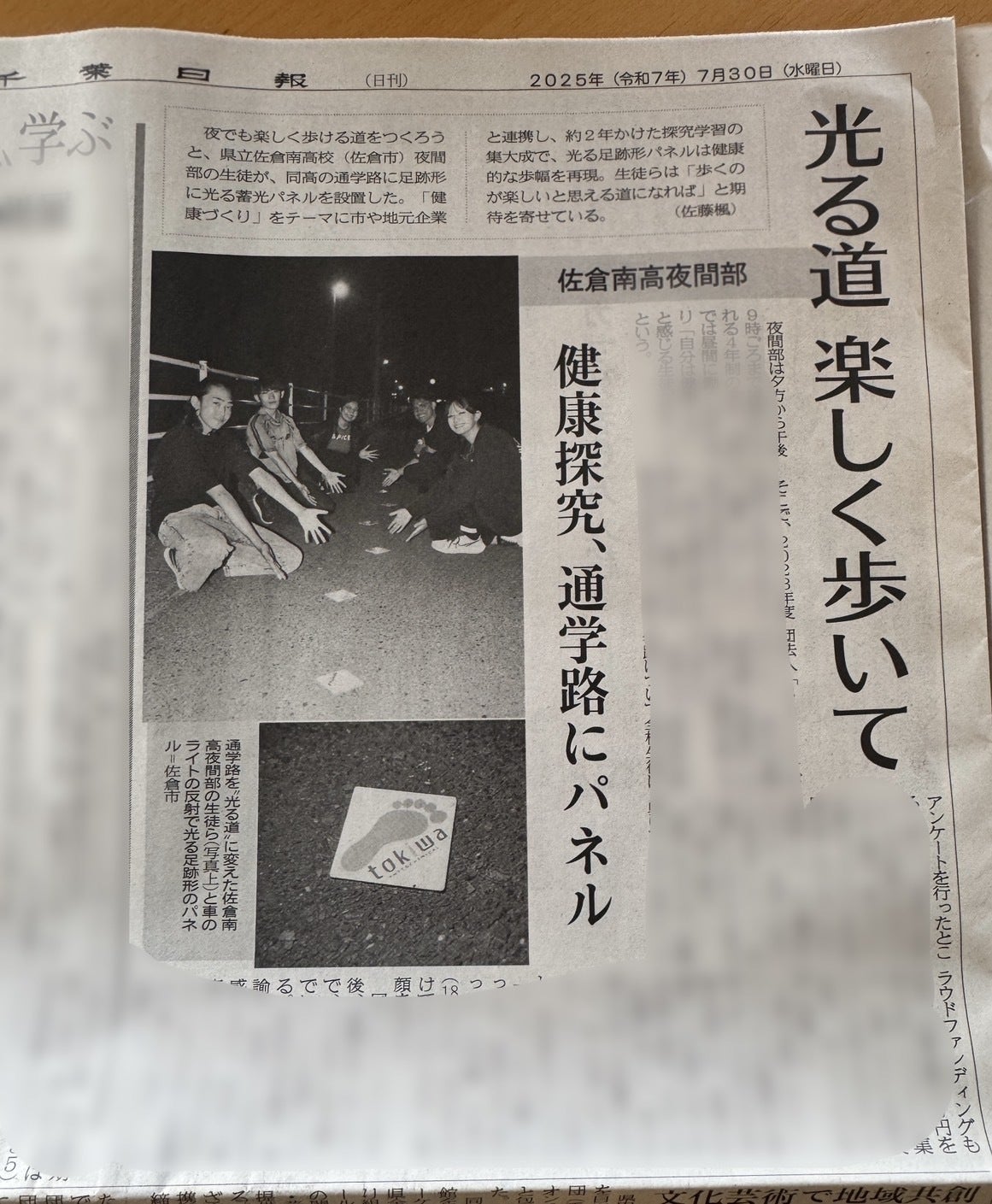 2025年7月30日(水)「千葉日報」朝刊にて、「健康まちづくりプロジェクト」の取り組みを大きく取り上げていただきました。
