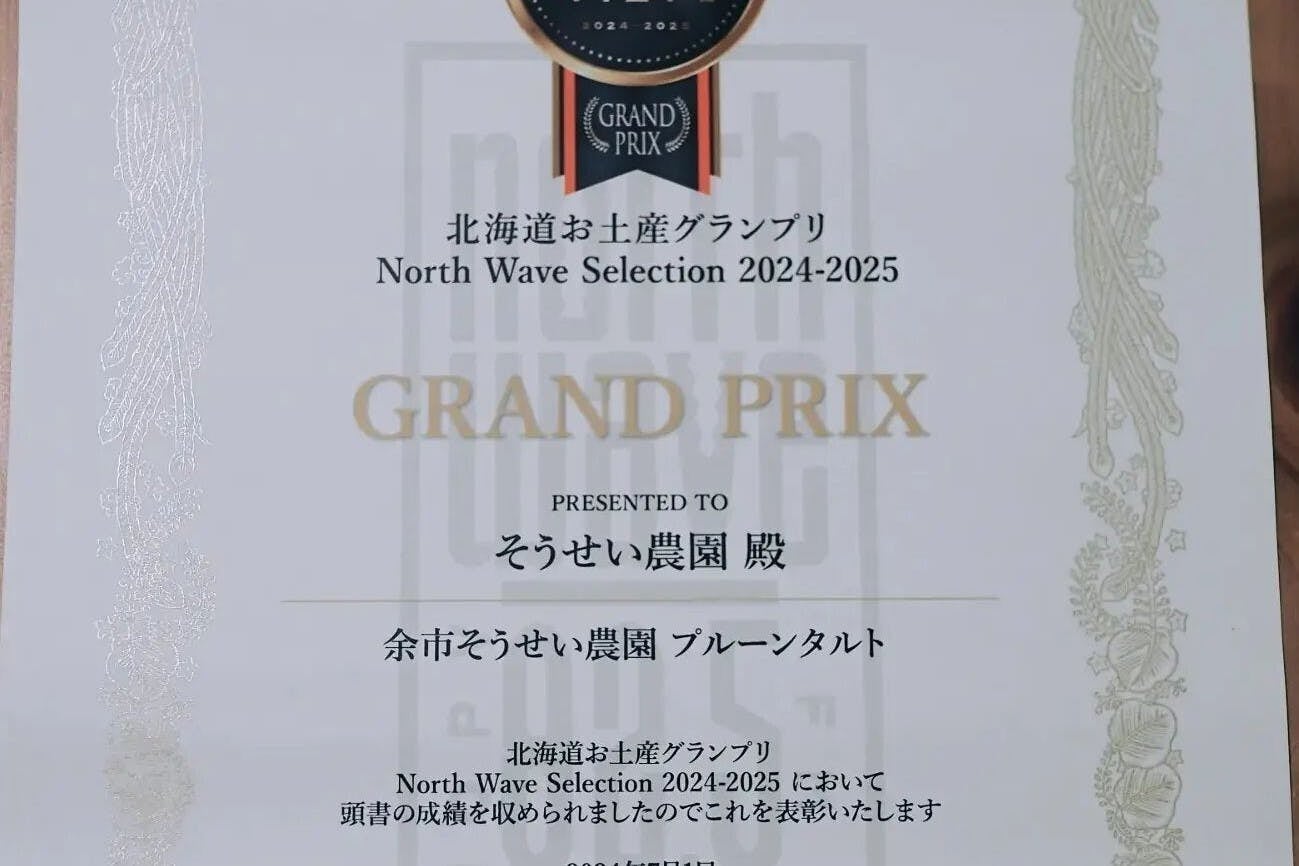 そんな第3回北海道お土産グランプリにおいて、私たちそうせい農園とマリキータプルス様とのコラボレーション作品「余市プルーンタルト」が、今年新設されたチャレンジ部門でグランプリに輝きました!