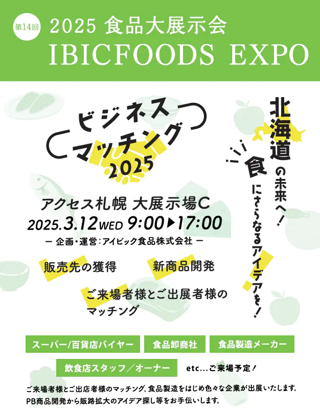 さて皆様にタルトをお届けするために日々活動していますが、この度、来週の3月12日(水)にアクセス札幌にて開催されますIBIC FOODS EXPOに出展します!
