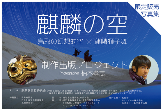 この展示会の開催を記念して、鳥取を拠点に活動するカメラマン柄木孝志さんによる因幡但馬麒麟獅子と因幡但馬の素晴らしい空をコラボさせた今までにない写真集を制作出版したいと計画しています。