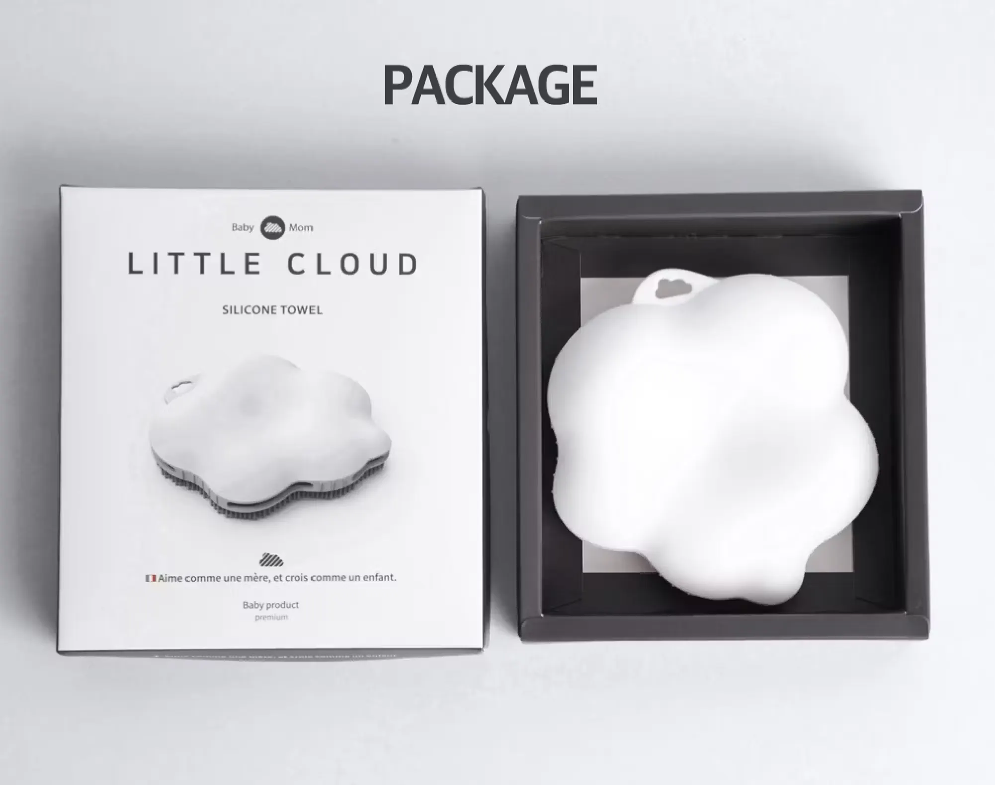 リトルクラウドは、医療機器と幼児食器などに使われる最高級のプレミアムシリコンを使用しています。国際試験機関で厳選したテストをパスした商品ですので、安心してシャワーを楽しんでください。