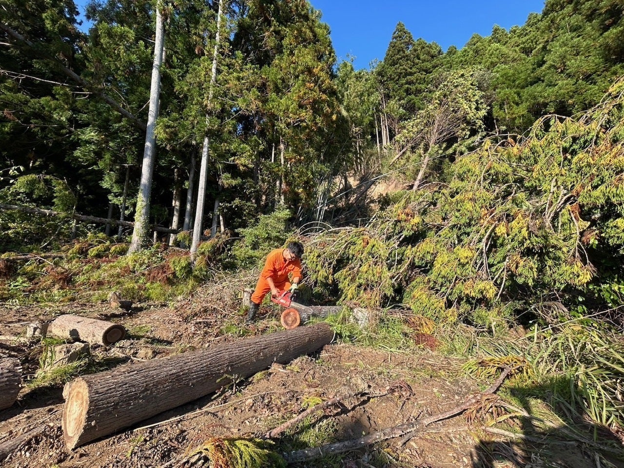天候に恵まれ、先日の豪雨で土砂崩れを起こした林地での、森林を伐採する作業を行いました。父とのチェーンソーでの作業は、危険な斜面の伐採や、不安定な倒木の伐採は、極めて慎重に行う必要があり、進めるスピードは極めてゆっくりです。どんな作業も家族での作業は一歩ずつですが、進んでいることに喜びを感じます。