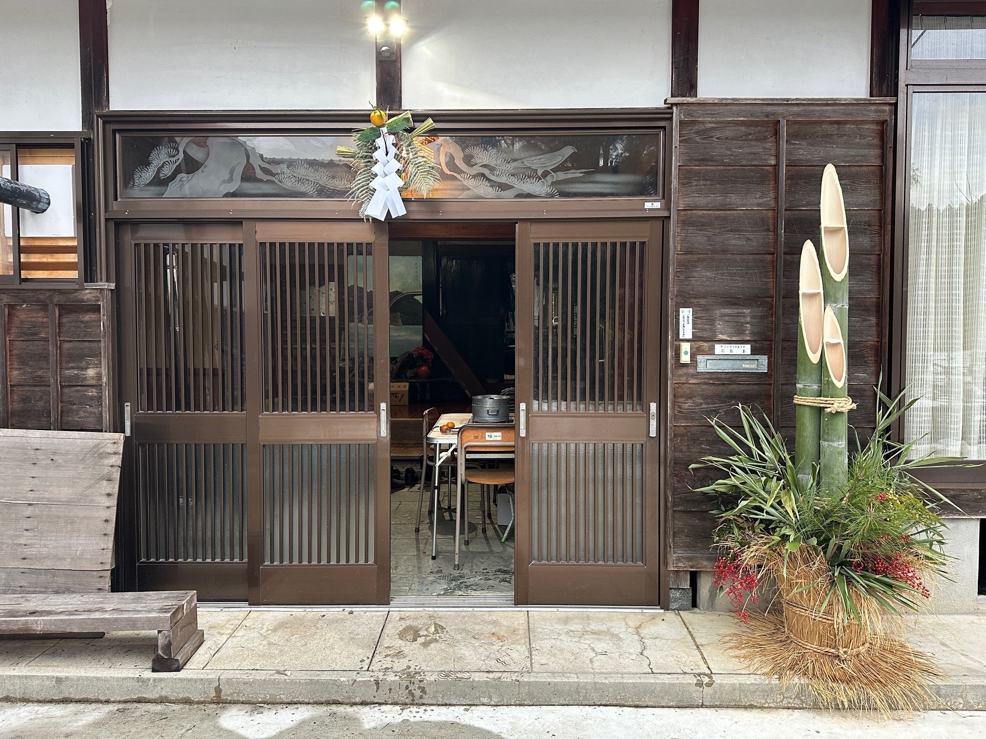 今回は、地震当日についてお伝えします。当日、2024年1月1日は、私たち家族は、毎年のように父、母、私、妻、息子2人の6人で輪島市門前町の父の実家で過ごしておりました。ちょうど、母の実家から皆で帰ってきたのが15時30分ごろです。写真は、帰ってきたときに、年末に父と私、2人の息子たちで作った門松を撮っておこうと思い、その時撮った写真です。それから、子供たちと外で遊んで、これから宿題の書初めをやろうかと思った矢先に最初の地震がありました。緊急地震速報が鳴り、子供たちを外から家の中へ呼び寄せましたが、それほど揺れはなく、居間で皆安堵しました。ただ、子供たちには、こんな時は屋根瓦が落ちるかもしれないから、家に入るんだよと話していました。ちょうどその時、岐阜に嫁いだ妹が心配し、電話がありました。しばらく、妹と電話で話しているときに、2度目の地震が襲います。最初は、子どもたちに言っていた通り、家にとどまろうとしましたが、揺れは収まるどころか、次第に強くなり、揺れに方向も変わりますが、終わりません。長く感じ、正に立っていられない中、玄関の梁が50cmほど下に落ちます。私はこのままではダメだと思いながら、何とか脱出させようと、近くにいた次男を玄関から外へ、突き出すように投げとばしました。そして、私と、長男を抱えた妻が脱出する中、父と母が家から出てきません。普段は叫ぶなんてことはしない私ですが、自分でも信じられないような叫びで、「早く、家から出て」と叫びます。それでも出てこない父と母、がようやくよろよろと出てきたときには、揺れも少しずつ収まっていました。本当に長く感じた時間でした。父はなぜか、「もう終わりだ、家はもうダメだ」「蔵もダメだ」とつぶやきながら出てきたのが思い出されます。母は、揺れの中、玄関のストーブにあったケトルのお湯が子どもにかからないか冷や冷やしたと言い、皆が何とか家の外に出ましたが、地面はひび割れ、その割れが直後から続く余震の大きな揺れで、開いたり閉じたりしています。これまで見たことのない光景に、私たち家族はとにかく私の車の中に入りました。そのときは、唯一囲まれた避難場所に感じられたからです。少し高台にある家から、車で移動することにしたのですが、家族皆が裸足で、全くの手ぶらで逃げだしたいました。もちろん、偶然鍵の開いていた私の車もキーは持っていませんでした。そのとき、父が自分の車のキーはポケットに入っていると言い、皆が喜びました。しかし、父の車は地震の揺れでバウンドしながらカーポートの柱にぶつかって停車していました。車がそれ以上に傷つくことは当然ですが、無理やり車をそこから出し、家族皆乗り込み、国道249号まで下ることができました。