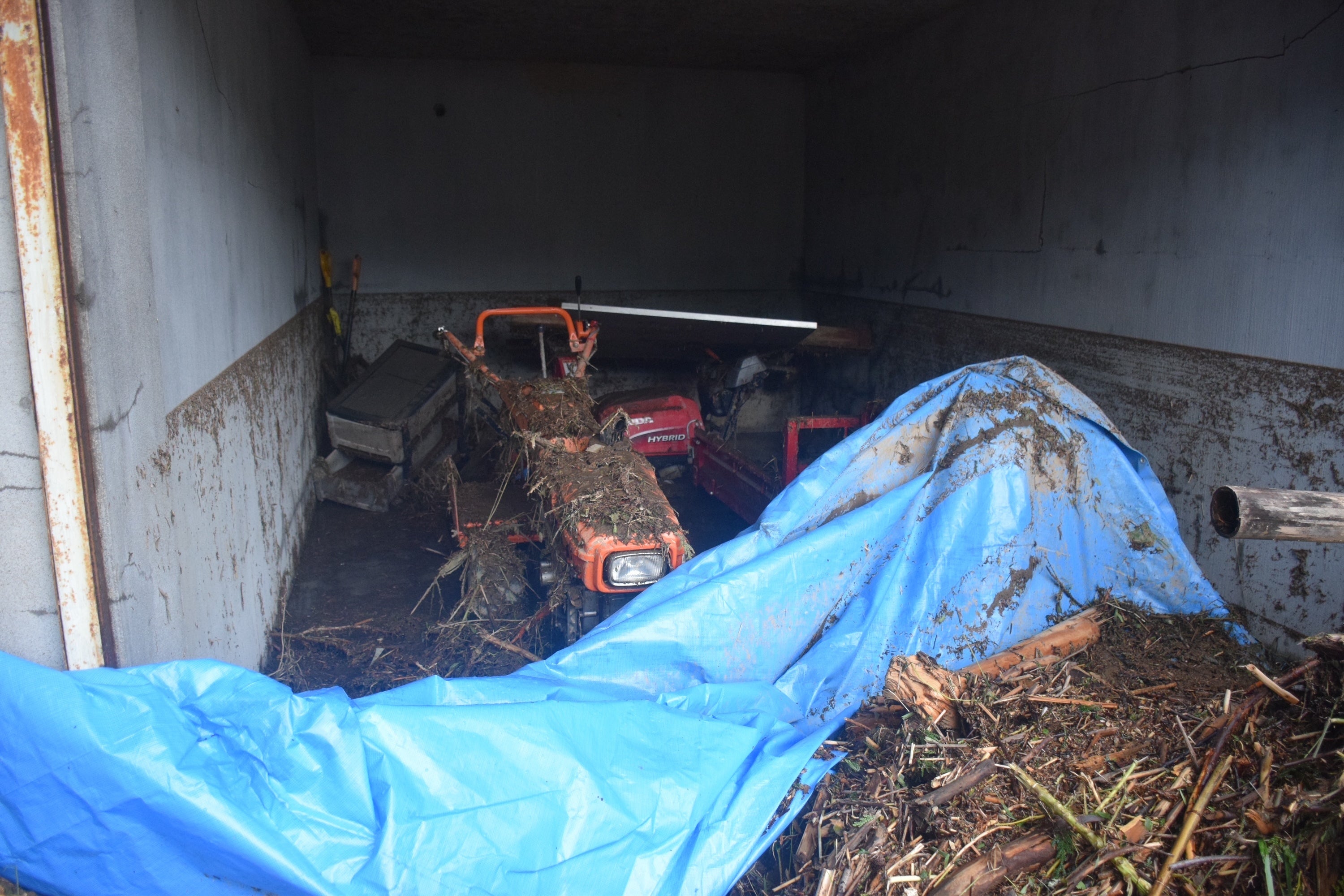 また、耕運機や運搬車などの農機具と倉庫も水害で使えなくなってしまいました。