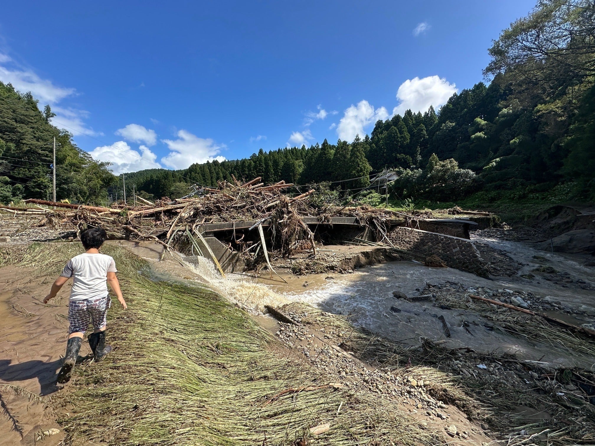 地震と水害で、流木と土砂に埋められてしまいました。