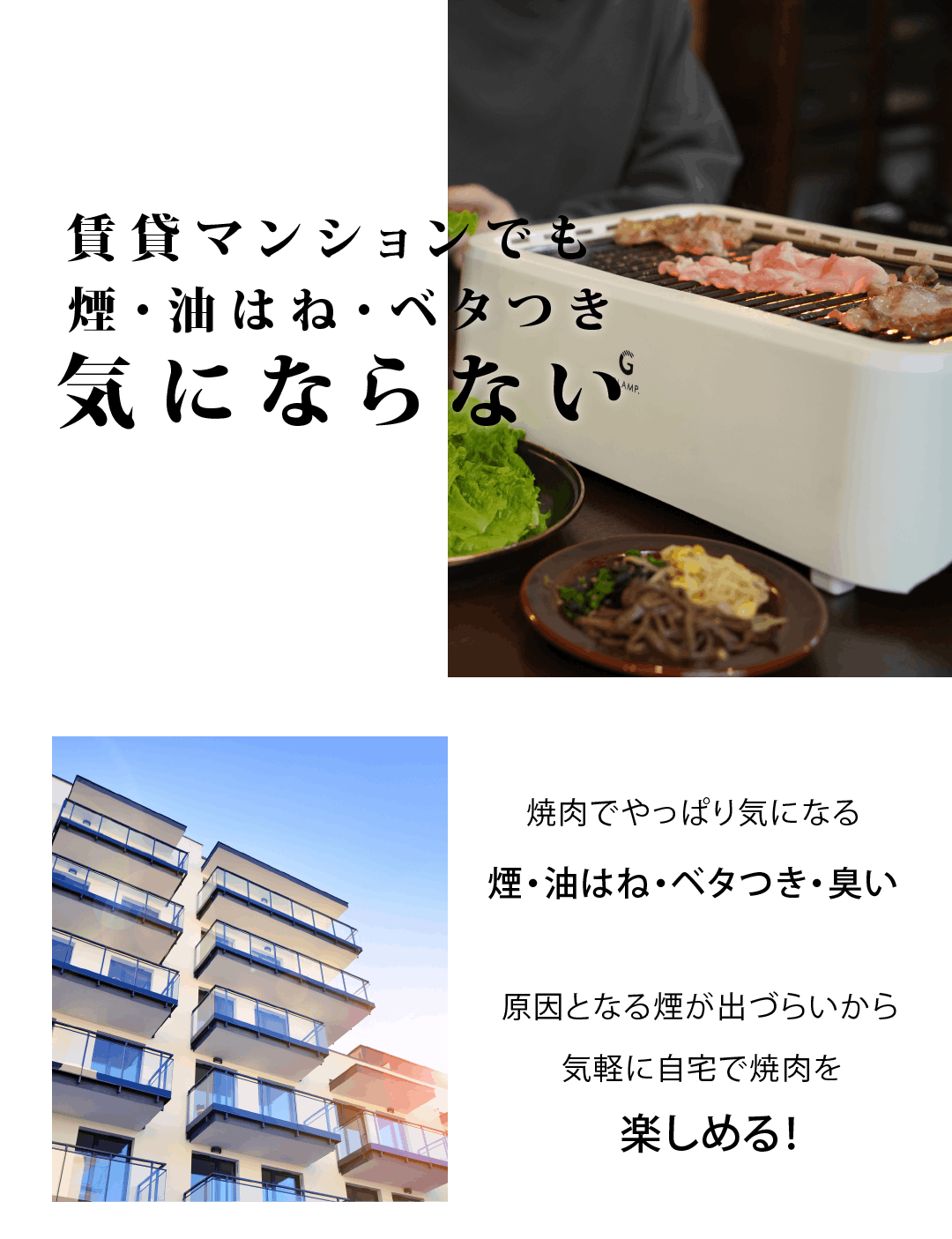 多くの家電量販店にもいき、実際に調理器具を10種類ほど購入しましたが、ホットプレート型はどうしても煙が立ち、お肉の水分が飛び、フライパンで焼いたような舌触りとなり、お肉がお店ほどおいしくならず、無煙を謳っている製品も、熱が強すぎるのか煙が立ってしまうな...と感じました。