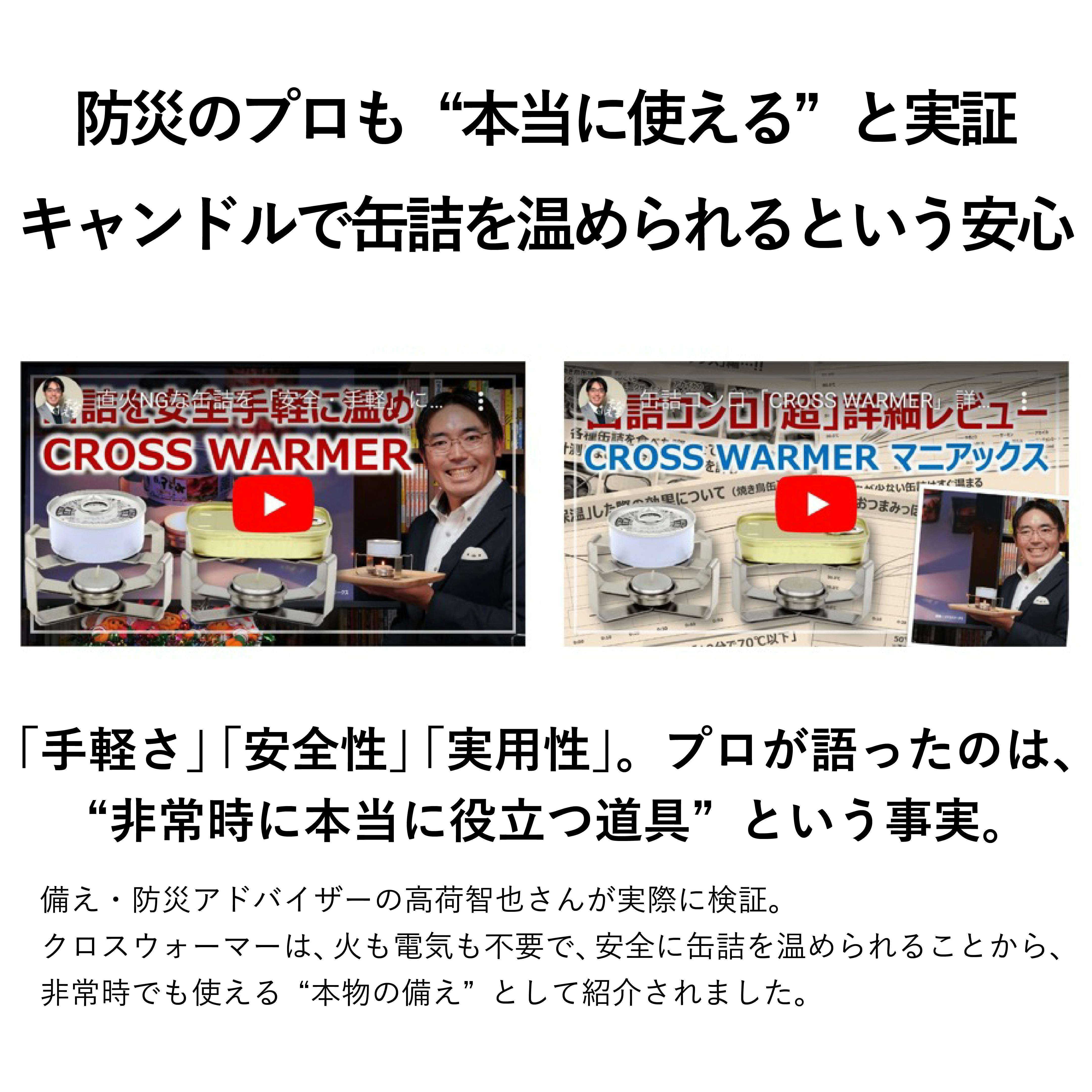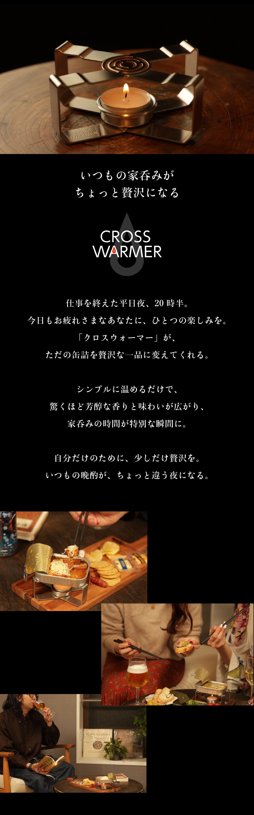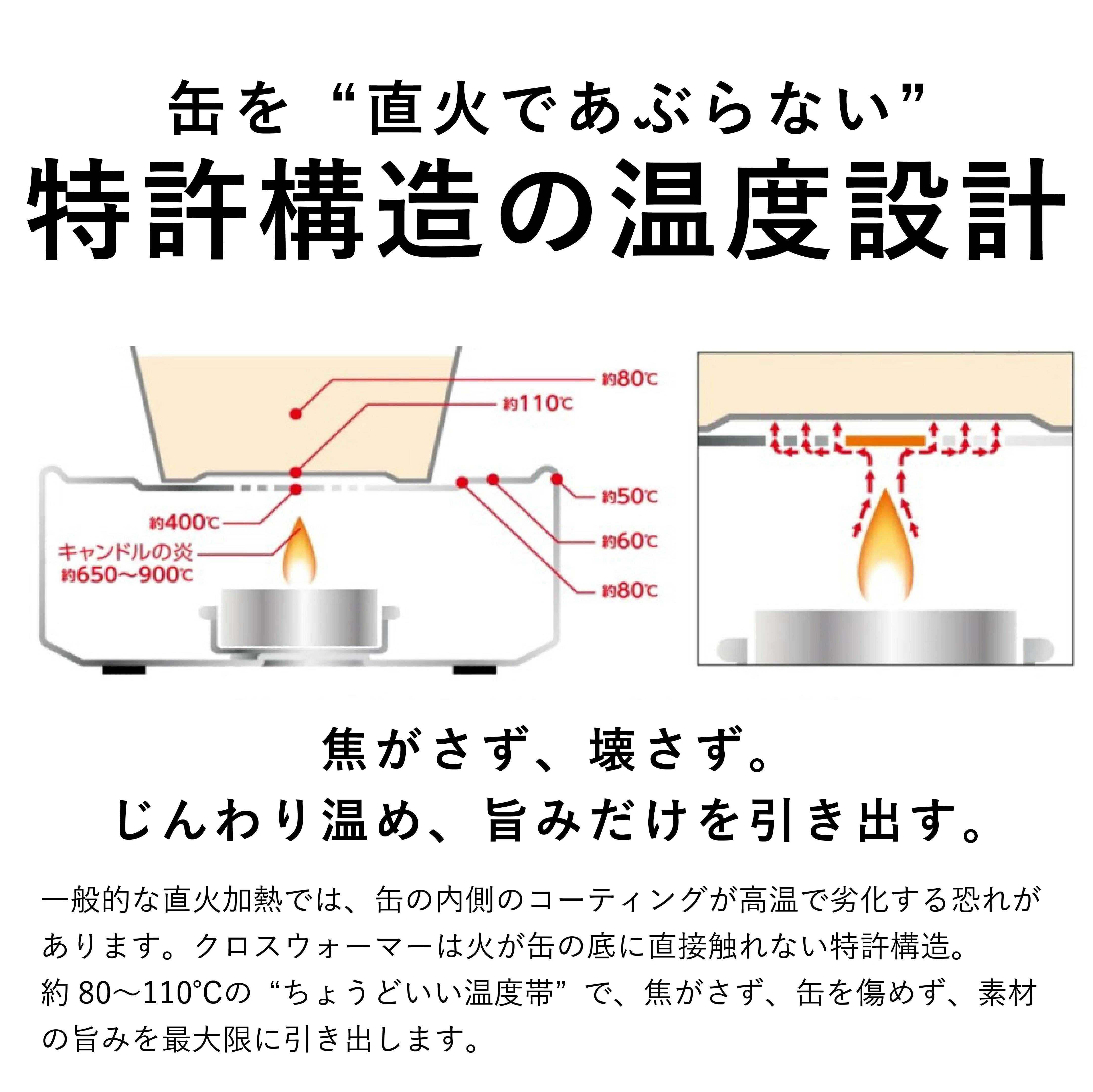しかし、クロスウォーマーはキャンドルの炎でじっくりと温めることで、缶詰のポテンシャルを最大限に引き出します。