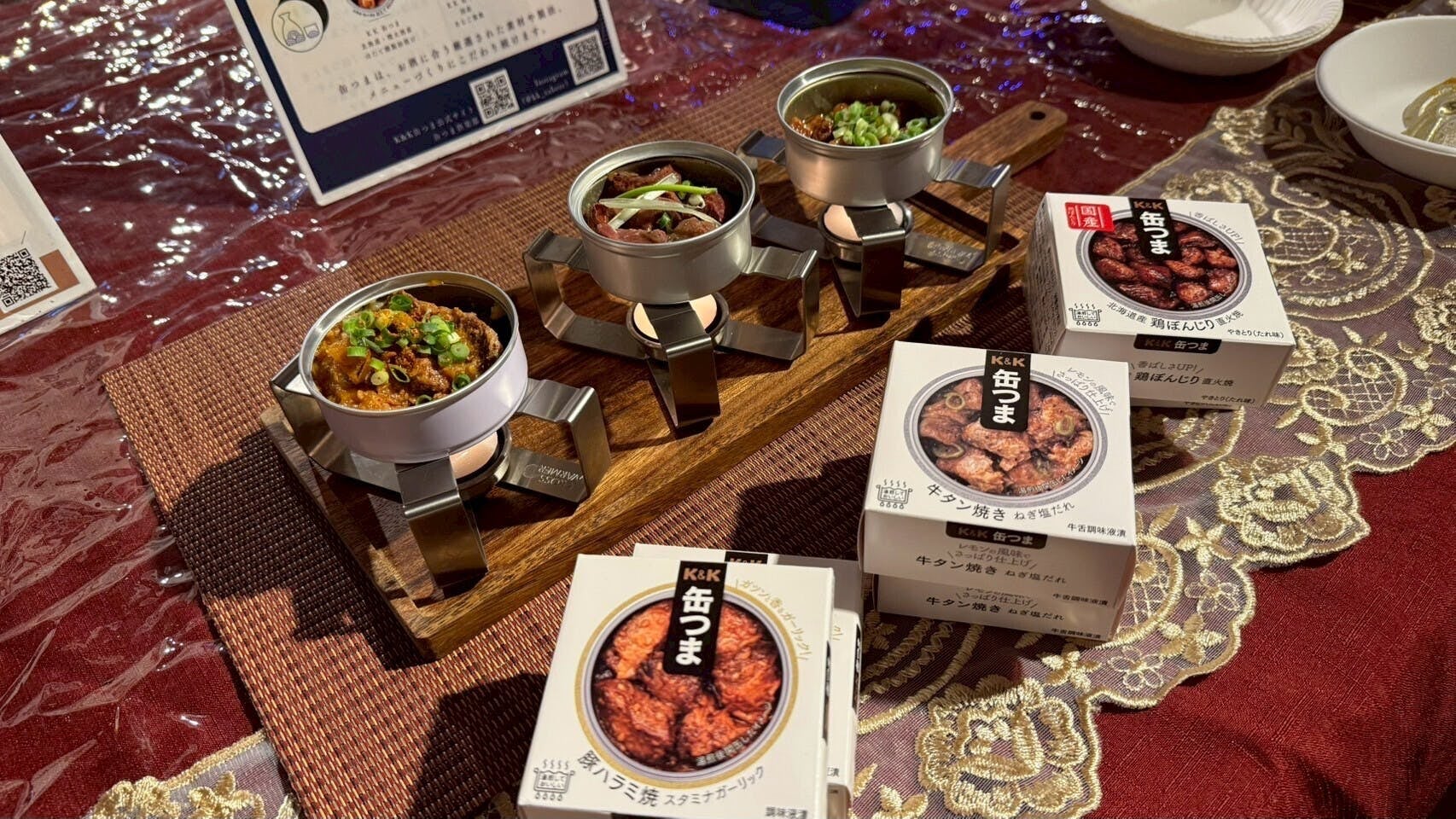 王道のK&K缶つまから地域限定のレア缶まで、トータル10種以上をラインナップ。「次はどれを温める?」と自然に会話が弾みます。