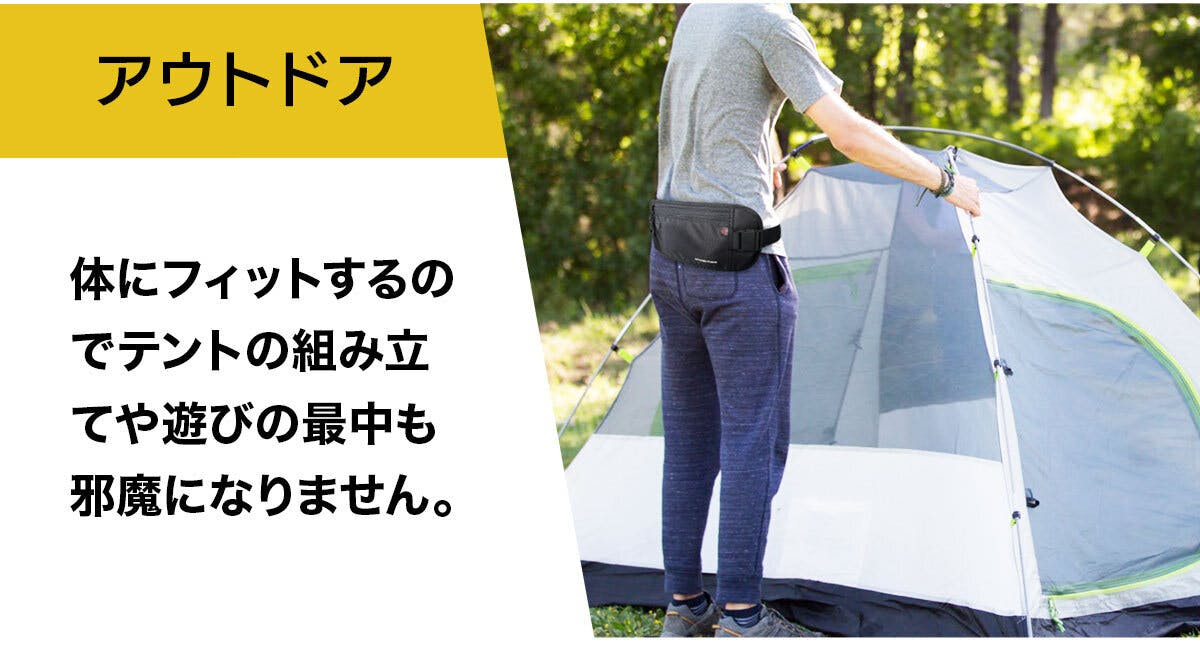 また、伸縮性のあるベルトが体にしっかりフィット。動いてもズレにくく、旅行やアウトドア、ランニングなど、アクティブなシーンでも快適に使用できます。