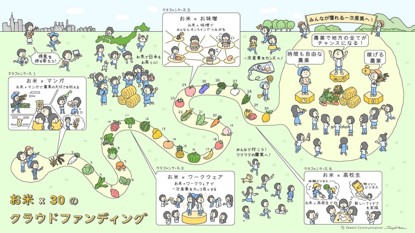 そのために、日本全国を巻き込んで「お米×〇〇」をテーマに30回にわたるクラウドファンディングを行います。このプロジェクトを通じて、農業を次の世代にもつながる魅力的なものに変えていきます!